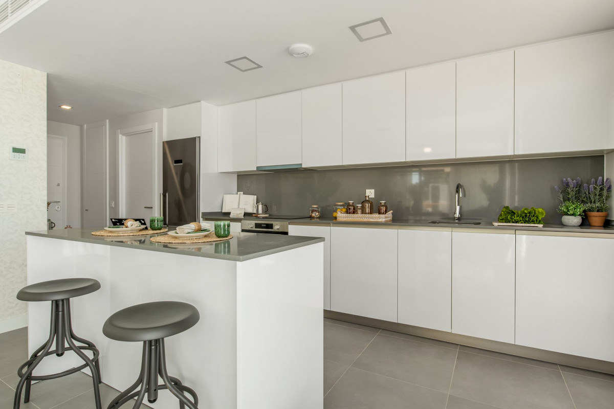 New Development: Prices from €697,700 to €779,900. [Bedrooms: 3 - 4] [Bathrooms: 2 - 3] [Built size: 100m2 - 120m2]. This development is a new residential complex in Mijas Costa, one of the best sought after areas of the Costa del Sol. This exclusive complex of 166 apartments of 2 and 3 bedrooms and Penthouses of 3 and 4 bedrooms, as well as fantastic common areas including a children's playground area. Ground floor apartments have terraces and private gardens. All kitchens have cooking islands and all bedrooms have access to large terraces. Open green areas, indoor heated pool and outdoor pools, Wellness Center, gym and running track. Many facilities included, not to mention all the amenities at walking distance. Definitely the perfect place on the Coast. Perfect terraces to enjoy Its architecture and contemporary design allow the terraces to enjoy the most of the Mediterranean light and the best views, mixing with the environment and respecting the nature that surrounds it. The Penthouse terraces are spacious and with breathtaking views. The ground floors have also a private garden. Private complex with large and fantastic common areas, surrounded by greenery and gardens, designed to enjoy the maximum leisure time with family and friends. Here we can find: several outdoor swimming pools, Spa area with indoor swimming pool, Turkish bath and sauna, gym, Social Club, paddle tennis court, putting green, urban orchards… The properties offer wide spaces, open kitchen with island, living room and bedrooms with direct access to the terrace. The units spaces have been optimized to be cozy, comfortable and versatile using materials chosen according to the highest quality standards. All 2 and 3 bedroom apartments have 1 underground parking space and 1 storage room included in the price, all 3 and 4 bedroom Penthouses have 2 underground parking spaces and 1 storage room included in the price. The Elevators in the development connect the different floors and are as follows: - Block 4 has 3 elevators servicing 30 apartments - Block 5 has 3 elevators servicing 26 apartments - Block 6 has 3 elevators servicing 30 apartments
