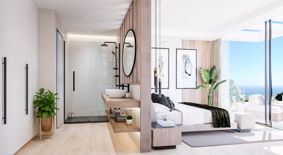 New Development: Prices from €1,995,000 to €1,995,000. [Bedrooms: 5] [Bathrooms: 6] [Built size: 550m2]. A Contemporary Sanctuary in the Nature of Mijas Tucked away on a peaceful elevated plot within an exclusive gated community, this villa is a refined new-build residence that redefines modern living in harmony with nature. Set in the Mijas mountains, just minutes from El Higuerón beach and with immediate access to the A-7 motorway, this property offers the perfect balance of privacy, contemporary design, and convenience. This is a secure residential complex made up exclusively of detached villas, featuring controlled entry with automated gates and surveillance cameras—ensuring privacy, tranquility, and a privileged setting surrounded by pine-covered mountains and open views of the Mediterranean Sea. Currently in the project phase with a granted building license, construction will begin immediately upon sale. The villa blends contemporary architecture with noble materials and clean lines, creating a timeless design that integrates seamlessly with the natural surroundings. Floor-to-ceiling windows and open-plan spaces with double-height ceilings allow natural light to flood every corner of the home. Designed for both everyday living and holiday enjoyment, the villa is spread over three well-connected levels: On the garden level, a stylish entrance with pergolas for vehicles leads to a spacious double-height foyer, an airy living room with large windows, an open-concept designer kitchen, guest toilet, one en-suite bedroom, and a landscaped garden with pergola-covered areas ideal for outdoor dining and relaxation. Upstairs, two main en-suite bedrooms—one on each side of the house—boast panoramic views of the sea and mountains. The lower level features a large multipurpose basement, perfect for a home cinema or games room, along with two additional bedrooms with bathrooms, a laundry area, utility room, and generous storage spaces. This villa is more than a house — it’s a way of life. A serene, elegant, and functional home, ideal for those who appreciate quality, design, and a strong connection to nature, without sacrificing proximity to amenities, shops, beaches, and the airport. A unique opportunity to own a custom new-build villa in one of the most peaceful and well-connected enclaves of Mijas.