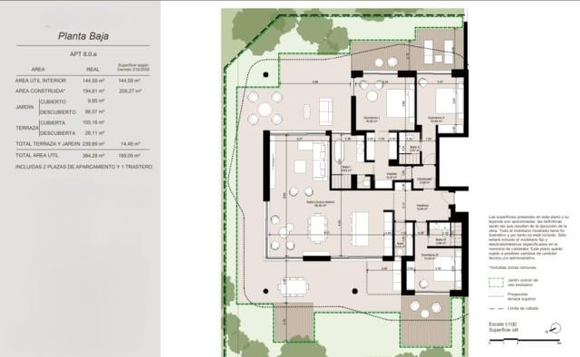 Gelijkvloers, Volledig uitgeruste keuken, Parkeerplaats: Ondergrondse parkeergarage, Pool: Gemeenschappelijk zwembad, Tuin: Privé en gemeenschappelijk