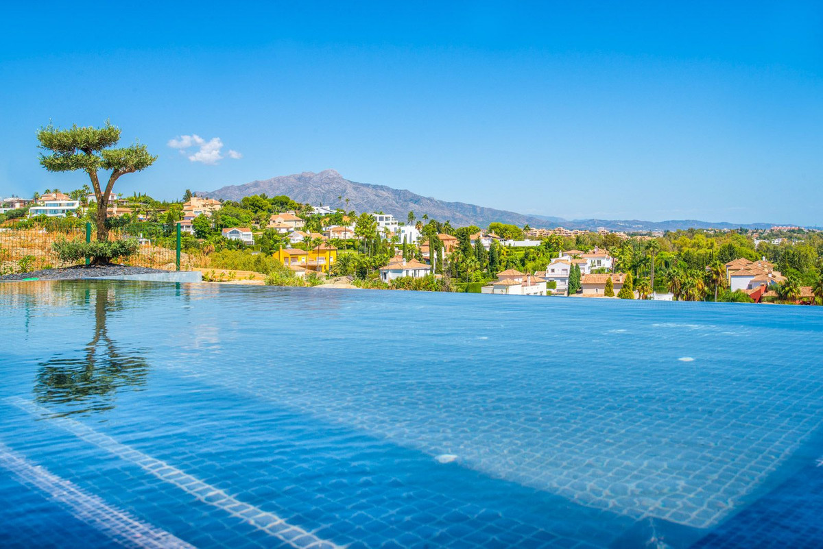 Spacious modern luxury apartment for sale with private pool in a gated community in Benahavis – Marbella The project is sold out, but we have a RESALE ! (see info below) Property Highlights Exclusive contemporary new build project with only 24 units Located within a 15-hectare fenced, private, residential resort Just a few minutes’ drive from all amenities, the beach, San Pedro and Puerto Banus Apartment and terrace with generous dimensions and privacy The location: In the golden triangle of Marbella - Benahavis - Estepona Located in the municipality of Benahavis, one of the most exclusive and prosperous municipalities of Spain, bordering the mundane Marbella and Estepona. Just a few minutes’ drive from the nearest amenities such as supermarkets and an international school. A stone's throw from 2 golf courses. Many more golf courses are within a ten-minute drive. At a 5 to 10 minutes’ drive from the beach, the lively San Pedro and the bustling Puerto Banus in Marbella. The complex Gated complex with permanent surveillance and a clubhouse Equipped with extensive high-quality facilities such as: State-of-the-art gym with a view A 25-metre-long communal swimming pool 5,000 m2 private walkway The Resale apartment Modern and sustainable design Semi-covered private terrace Fully equipped modern kitchen with Siemens white goods 3 Bedrooms, 2 bathrooms of which one en-suite and a guest toilet Bathroom fittings from Villeroy & Boch and Hansgrohe Air conditioning for cooling and heating Underfloor heating Home automation: keep in touch system Underground parking spaces and a storage room Charging point for electric cars in the garage of each property In figures: 3 bedrooms 2 bathrooms 1 guest toilet 1st floor apartment with private pool Built inside : 152m2 (140m2 useful) 80m2 terrace (partly covered) and a pool of 18,48m2 2 underground parking spaces Storage room of 10,42m2 Completion: scheduled for 04/2026