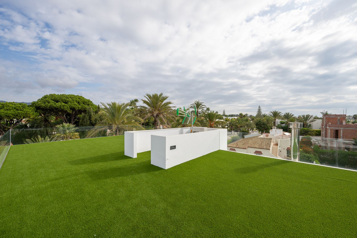 | Setting: Beachside, Close To Shops, Close To Sea, Close To Schools, Urbanisation Orientation: South Condition: Excellent, New Construction Pool: Private Climate Control: Air Conditioning, Hot A/C, Cold A/C, U/F Heating, U/F/H Bathrooms Views: Sea, Beach, Garden Features: Covered Terrace, Private Terrace Furniture: Optional Kitchen: Fully Fitted Garden: Private Security: Electric Blinds, 24 Hour Security Parking: Garage, More Than One Utilities: Electricity Category: Luxury, Contemporary |