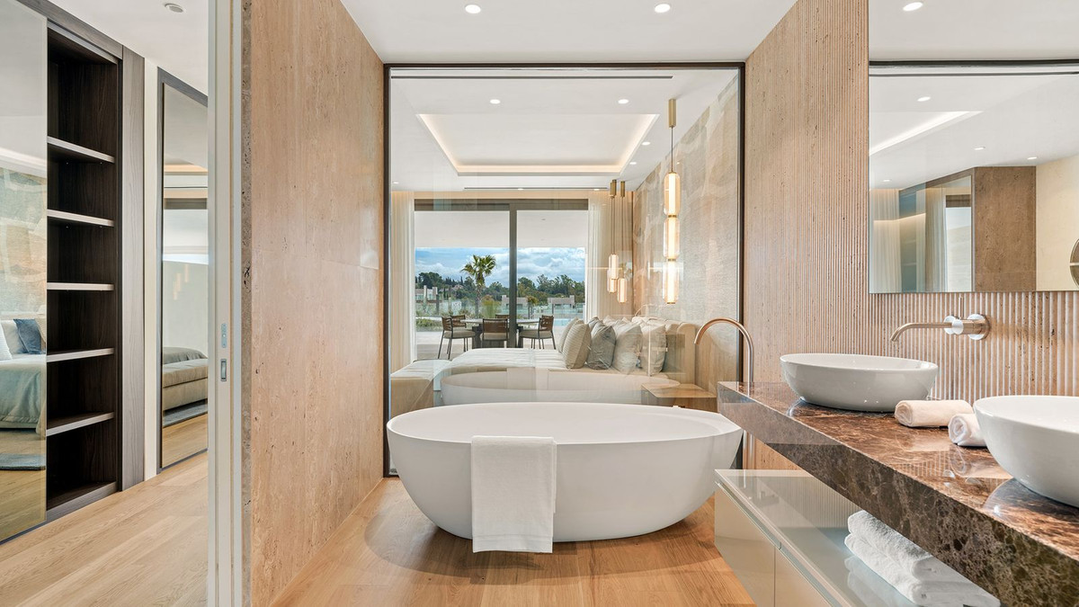 | Setting: Commercial Area, Beachside, Close To Golf, Close To Port, Close To Shops, Close To Sea, Close To Town, Close To Schools, Urbanisation Orientation: South East Condition: Excellent, New Construction Pool: Communal, Indoor, Heated, Children`s Pool Climate Control: Air Conditioning, Hot A/C, Cold A/C, Fireplace, U/F Heating, U/F/H Bathrooms Views: Sea, Mountain, Pool Features: Covered Terrace, Lift, Fitted Wardrobes, Private Terrace, Satellite TV, WiFi, Gym, Games Room, Paddle Tennis, Tennis Court, Storage Room, Utility Room, Ensuite Bathroom, Wood Flooring, Access for people with reduced mobility, Marble Flooring, Bar, Barbeque, Double Glazing, Domotics, 24 Hour Reception, Car Hire Facility, Day Care, Near Mosque, Staff Accommodation, Near Church, Basement, Fiber Optic Furniture: Fully Furnished Kitchen: Fully Fitted Garden: Communal Security: Gated Complex, Electric Blinds, Entry Phone, 24 Hour Security, Safe Parking: Underground, More Than One Utilities: Electricity, Drinkable Water, Telephone, Photovoltaic solar panels Category: Holiday Homes, Luxury, Contemporary |