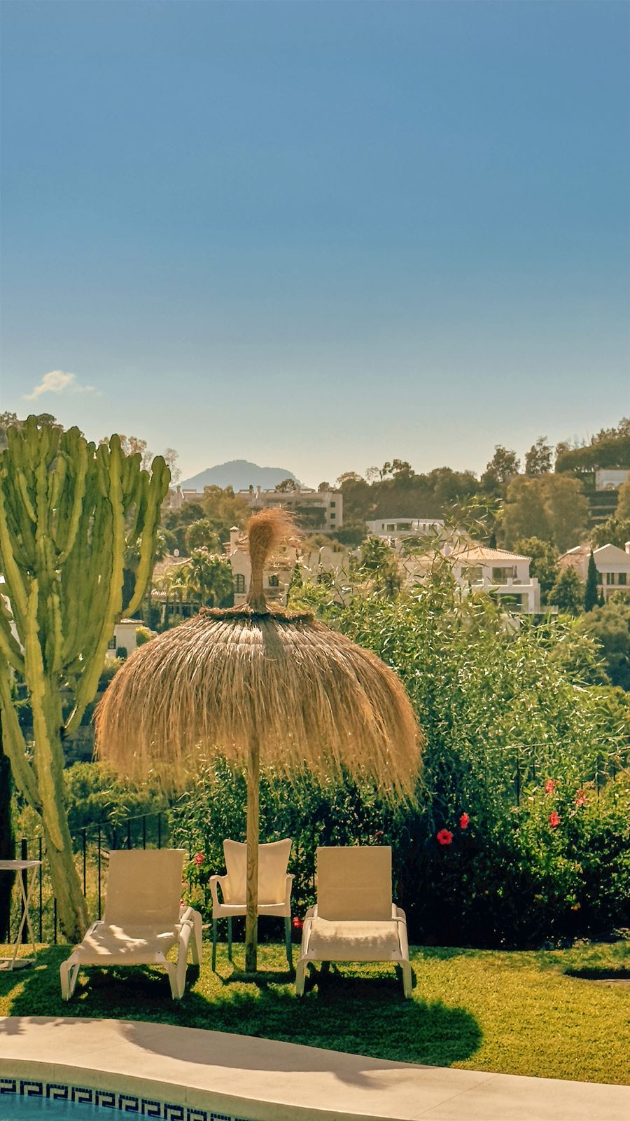 Charming West facing Renovated townhouse in La Quinta Hills, La Quinta - Benahavis. Perfect orientation with evening sun with views over the La Quinta Golf course and the surroundings. Distribution is entrance hall opening up to the guest toilet, separate kitchen with brand new appliances and a table for for people to enjoy your meal . Spacious living room are divided into living area and a dining area and leads out to the terrace (both covered and uncovered) and the private small garden with lovely views to the golf. Upstairs there are 3 bedrooms: the master ensuite and the other 2 bedrooms that share a bathroom with a shower. There is a small west facing terrace from the 2 bedrooms. The third bedroom has access up to the spacious solarium with 360 degree views. Great gated community offers a covered parking place, communal garden and a swimming pool , steps away from this townhouse. Ideal for anyone looking for a family home in a tranquil area.