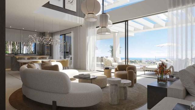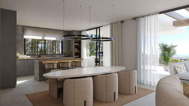 Nieuwe moderne villa's te koop in Estepona met panoramisch uitzicht. Gelegen in een pittoreske en bevoorrechte omgeving, omringd door natuurlijke weelde, vormen deze luxe villa's een set van twaalf verfijnde villa's met een eigentijdse esthetiek, ontworpen door een van de meest gerenommeerde studio's aan de Costa del Sol. Het architectonische ontwerp van elke villa is zorgvuldig aangepast aan het natuurlijke terrein, wat een optimale verdeling van de ruimte garandeert, het binnenlicht maximaliseert en onvergelijkbare uitzichten biedt. In het ontwerp regeert licht als hoofdrolspeler en essentieel element. De strategische plaatsing van grote ramen en plafonds met dubbele hoogte zorgt ervoor dat de ruimte onbeperkt en licht lijkt. Om het concept van luxe te verheffen, worden zowel de binnen- als buitenkeukens, de ontwerpen zorgvuldig vervaardigd door Modulnova, een vooraanstaande leider in de sector die bekend staat om zijn kunst, elegantie en deskundige omgang met materialen. Naast de exclusiviteit van dit project, is een ander zeer belangrijk punt om rekening mee te houden de flexibiliteit in de vorm van betaling. Voor meer informatie, aarzel niet om contact met ons op te nemen.