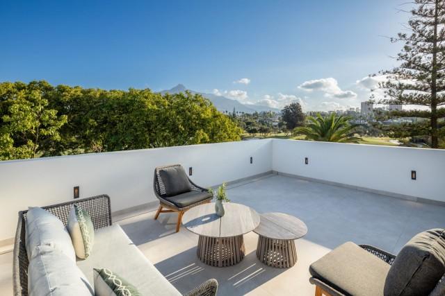 Frontline Golf Nieuwe moderne villa te koop in Nueva Andalucia Marbella. Dit uitzonderlijke pand is instapklaar en recentelijk gebouwd en biedt een luxueuze woonervaring met modern design en natuurlijke schoonheid. Deze prachtige villa biedt een zorgvuldig ontworpen ontwerp van een gerenommeerde architect en ontwikkeld door een vooraanstaande ontwikkelaar die bekend staat om zijn onberispelijke normen en aandacht voor detail. Gelegen aan de eerste lijn van de golfclub Las Brisas in Nueva Andalucía, is de locatie een van de opvallende kenmerken. Las Brisas staat bekend om zijn rustige woonomgeving, prachtige landschappen en de nabijheid van de beste voorzieningen van Marbella. Nueva Andalucía combineert rust met gemak en biedt gemakkelijke toegang tot het levendige Puerto Banús, beroemd om zijn luxe jachthaven, luxe winkels en lekker eten. Bewoners genieten van een serene sfeer in een gevestigde wijk, terwijl ze zich op korte rijafstand van het bruisende hart van Marbella bevinden. Gelegen op een royaal perceel van 1.454 vierkante meter, heeft deze prachtige villa een oppervlakte van 710 vierkante meter verdeeld over drie niveaus. Deze woning beschikt over vijf ruime slaapkamers, elk met een eigen badkamer en een extra toilet, waardoor er voldoende ruimte en privacy is voor familie en gasten. Het ontwerp van de villa maakt indruk met hoge plafonds, grote ramen en hoogwaardige materialen. Bij binnenkomst onthult de villa een uitnodigende sfeer waar warme tinten en elegante afwerkingen naadloos in elkaar overgaan. De grote boog en loodlampen creëren een gevoel van grandeur, terwijl houten deuren een rustieke charme toevoegen. De belangrijkste woonruimte is zowel functioneel als esthetisch aantrekkelijk, met een open indeling die ruimte en licht maximaliseert. Verborgen warme LED-verlichting zorgt voor een gezellige sfeer, en de hoge kozijnen bieden een adembenemend uitzicht op de berg La Concha, de golfbaan en een rustig meer met een fontein. Een hoogtepunt is de keuken, voorzien van hoogwaardige apparatuur en voldoende opbergruimte. Het beschikt over een extra groot kookeiland, ideaal voor een informeel diner of entertainment. De keuken kijkt uit op het overloopzwembad en de jacuzzi en biedt een prachtig uitzicht op de golfbaan en het weelderige landschap. De buitenruimtes zijn even indrukwekkend, met een privézwembad, een vuurplaats en een overdekte ruimte voor een buitenkeuken, perfect om buiten te dineren. De tuin van de villa is zorgvuldig aangelegd en biedt een mooie en functionele buitenruimte. De accommodatie geniet de hele dag van zonlicht, waardoor het ideaal is om te ontspannen of te entertainen. De eerstelijnsgolflocatie biedt een uniek voordeel: het biedt vrij uitzicht op de goed onderhouden golfbaan en de omliggende natuur, waardoor privacy is gegarandeerd zonder risico op ronddolende golfballen. In de kelder blijft dit luxe onroerend goed indruk maken met een volledig ingerichte technogym, een sauna en een stoomkamer, waardoor een privé wellness-retraite ontstaat. De kelder beschikt ook over een tweede woonkamer met volledige ramen die natuurlijk licht binnenlaten, waardoor het typische keldergevoel wordt geëlimineerd. Deze ruimte omvat een bar met een stenen achterwand, een thuisbioscoop en extra slaapkamers, waardoor het een veelzijdige ruimte is voor ontspanning en entertainment. De trap is een kunstwerk, met verborgen verlichting en prachtig ontworpen treden die bijdragen aan de elegantie van de villa. Het pand is ontworpen om een ​​mix van luxe en comfort te bieden, waarbij aan elk detail zorgvuldig is gedacht om een ​​harmonieuze leefomgeving te creëren. Dit nieuwe pand is meer dan alleen een huis; het is een toevluchtsoord waar moderne luxe en natuurlijke schoonheid samenkomen. Het streven van de ontwikkelaar naar kwaliteit en de visie van de architect hebben een pand gecreëerd dat een ongeëvenaarde woonervaring biedt. Met zijn toplocatie, uitzonderlijk ontwerp en uitgebreide voorzieningen is de villa een van de meest gewilde eigendommen in de omgeving. Of u nu een golfliefhebber bent of gewoon van fijn leven houdt, deze villa biedt een levensstijl die zowel luxueus is als diep verbonden met de prachtige omgeving.