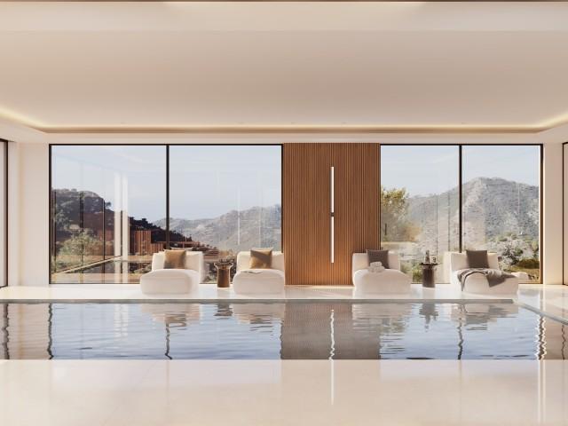 Luxe landhuis in aanbouw te koop in La Zagaleta Country Club Benahavis. Dit gloednieuwe landhuis is in de zomer van 2025 klaar voor u. Het wordt geleverd met alles wat u zich maar kunt voorstellen en wensen in een modern heiligdom! Het staat op een ruim perceel van 3.410 m2, omgeven door prachtige beschermde natuur en vergelijkbare luxe eigendommen van La Zagaleta. Het huis met 8 slaapkamers heeft 1.250 m2 bebouwd, 3 verdiepingen en 663 m² terrassen. Het is gericht op het zuiden en biedt een verbluffend panoramisch uitzicht op de Middellandse Zee, de golfbaan en de vredige bergen. De ontwikkelaars hebben geen kosten bespaard met dit uniek ontworpen meesterwerk. Betreed het huis via een brug over een watermeer aan elke kant, dat naar het lagere niveau stroomt, en recht voor u is er een gigantische houten deur. Stap binnen in een ruime, dubbele hal, die leidt naar de bijna 10 m brede woonkamer. Aan de rechterkant heeft u een grote open ruimte, inclusief een strakke keuken; links is de belangrijkste eetruimte. De begane grond omvat ook 2 slaapkamer suites met en-suite badkamers. Boven, over de gehele westvleugel, is de luxe Master suite met een inloopkast, een open haard, een en-suite badkamer en een eigen toegang tot het terras. Er bevinden zich nog 2 slaapkamers in de oostvleugel op de 1e verdieping. De kelder bestaat uit een fantastische SPA-ruimte met een verwarmd binnenzwembad, perfect voor de winter, een fitnessruimte, een stoombad en een sauna. Een speelkamer, bioscoopzaal, 2 gastensuites met gedeelde woonkamer, bar, wijnkelder, wasruimte en een personeelsappartement zijn ook allemaal aanwezig, in deze enorme benedenverdieping. We mogen de garage niet vergeten, die plaats biedt aan 6 auto's en een carport voor nog eens 2 auto's. Het terras is een fenomenale plek om tijd door te brengen met vrienden en familie. U kunt zwemmen in het overloopzwembad, genieten van de barbecue en chill-out-gebieden het hele jaar door, aangezien het een aparte vuurplaats heeft. Een luxe cabana is omgeven door een groot vlak tuingedeelte. De prachtig aangelegde tuin leent zich perfect voor alles wat in je opkomt vanwege de hoeveelheid ruimte die het bevat. Het prachtige huis in Zagaleta wordt in de zomer van 2025 opgeleverd en is uitgerust met een lift, jacuzzi, Sonos Stereo Surround-systeem, airconditioning, vloerverwarming, glazen deuren, inbouwkasten, toegang voor gehandicapten, domoticasysteem, alarm en vele andere luxe voorzieningen. Dit is een van de veiligste investeringen om te doen en de veiligste plekken om te wonen, aangezien het luxe huis zich bevindt in het super exclusieve golfresort, in de zeer speciale gated community met strikte 24-uurs beveiliging en ook bewakingscamera's zijn inbegrepen. Het wereldberoemde landgoed van La Zagaleta heeft een privéhelikopterplatform, 2 elegante clubhuizen, een manege, 2 restaurants, 2 fantastische golfbanen en nog veel meer. Het is niet alleen een ideaal nieuw luxe pand op een toplocatie. Het is een levensstijl voor een paar!