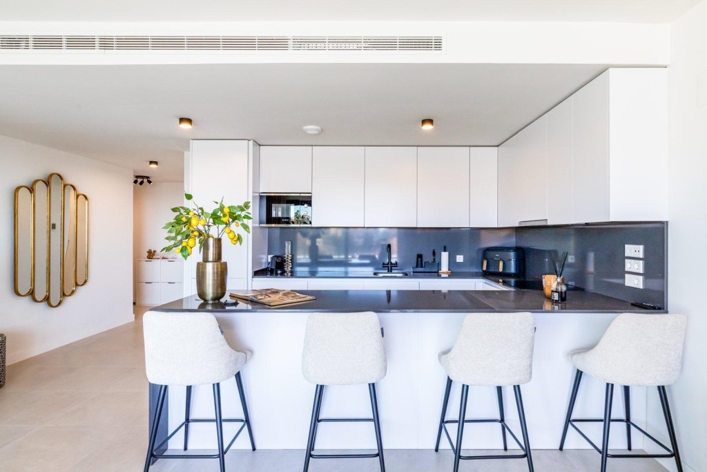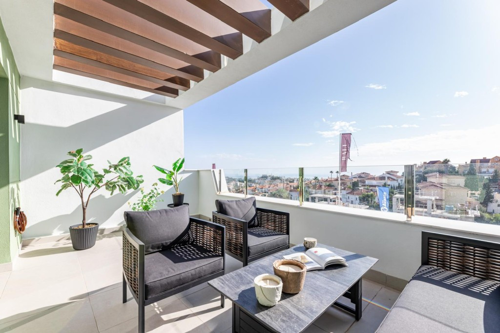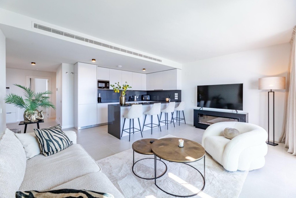 Setting: Close To Golf, Close To Shops, Close To Schools Condition: Excellent, Good Pool: Communal Climate Control: Hot A/C, U/F/H Bathrooms Views: Sea, Mountain Features: Fitted Wardrobes, Gym, Ensuite Bathroom Kitchen: Fully Fitted Garden: Communal Security: Gated Complex, 24 Hour Security