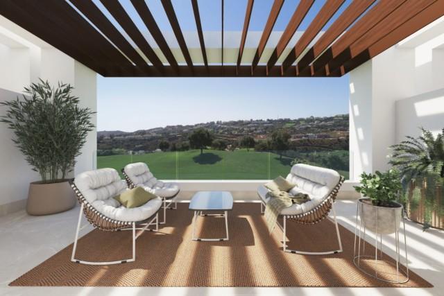Dorpswoning, Nabij golfbaan, Volledig uitgeruste keuken, Pool: Gemeenschappelijk zwembad, Tuin: Gemeenschap met zwembad, Richting: oost,west en zuid Uitzichten: Kust, Platteland, Tuin, Green Zones, Open. Eigenschappen Accessible all year round, Airconditioning Warm/Koud, Eigentijdse stijl, Parkeerruimte, Bergruimte, Zwembad, Entree met video systeem.