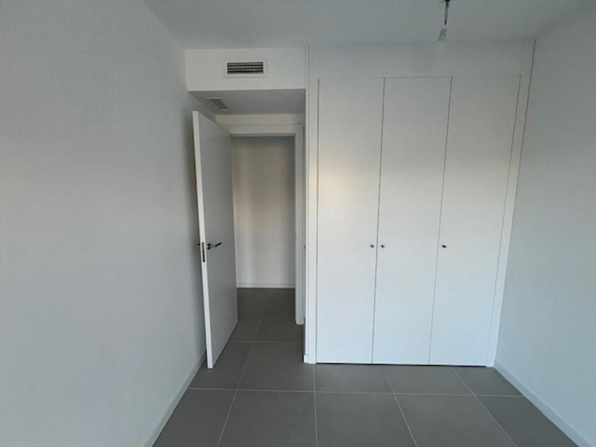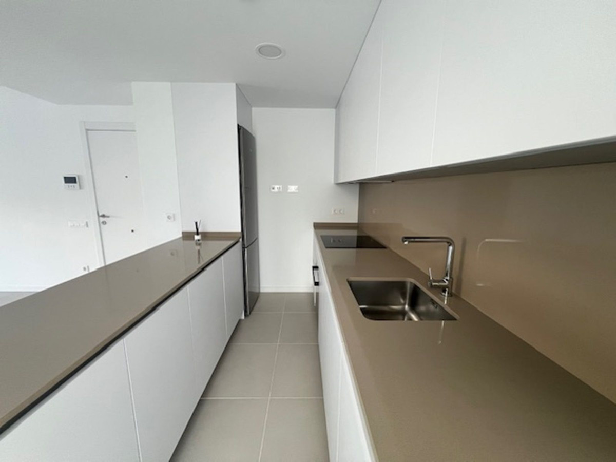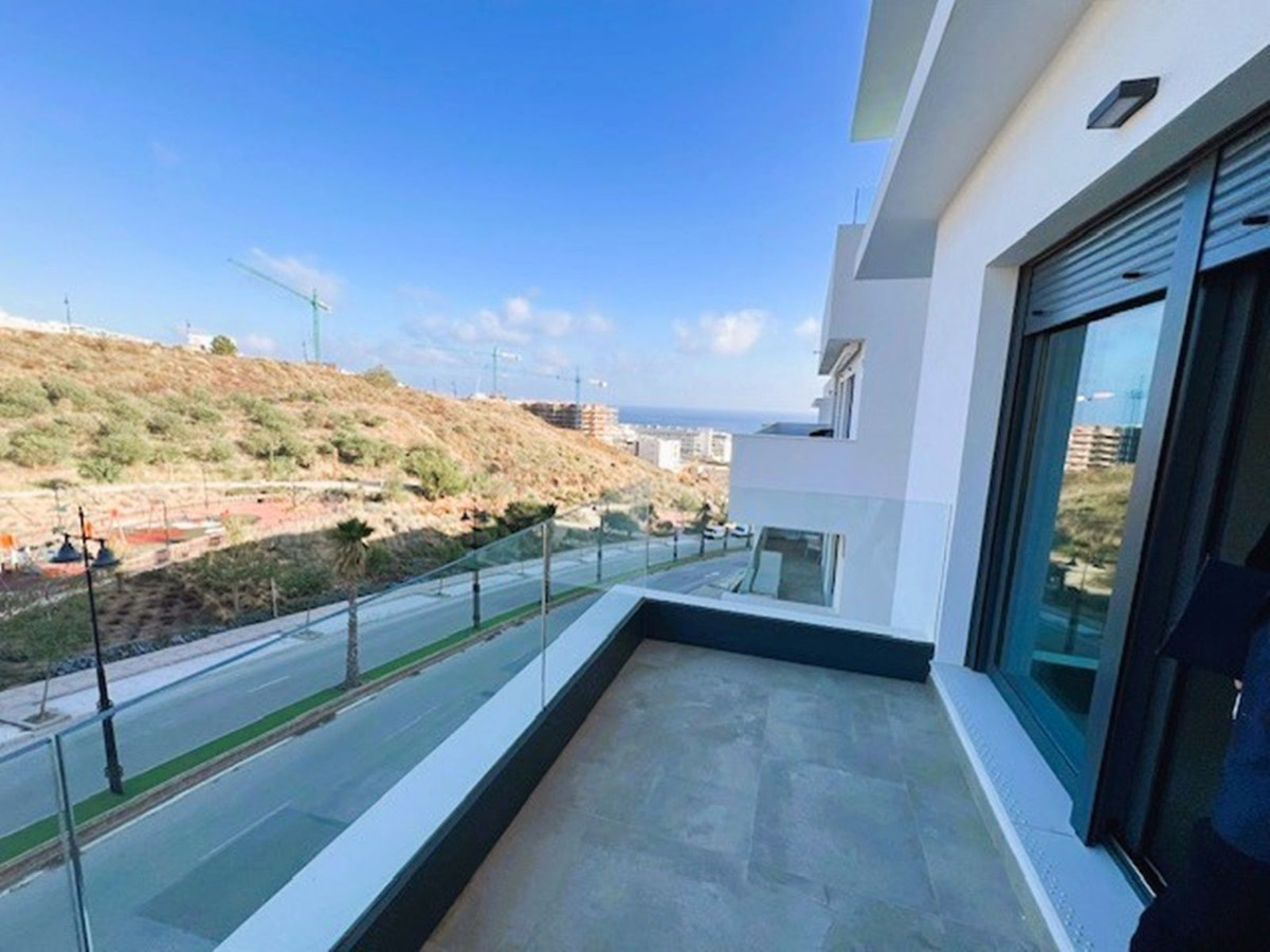THE APARTMENT IS NOW RENTED FOR LONG TERM. IT CAN BE PURCHASED WITH THE CURRENT LEASE CONTRACT. Brand new east facing apartment, with 3 bedrooms, 2 bathrooms, spacious living-dining room, open plan kitchen fully furnished and equipped with electrical appliances, laundry area with washing machine, spacious terrace of 22m2 with mountain views and partial sea views. Master bedroom with walk-in closet and ensuite bathroom. Air conditioning hot and cold, built-in wardrobes in all bedrooms and living room, blinds in bedrooms and living room. Includes one parking space and storage room. Community area includes salt-water swimming pool, solarium and gymnasium.