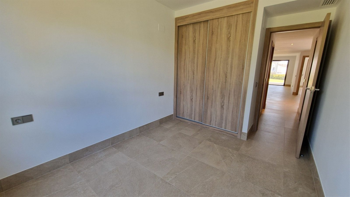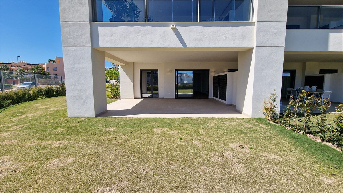 Discover this stunning brand new, key ready corner 3-bedroom garden apartment nestled in the charming region of Casares Costa. As you step inside, you are welcomed by a bright and airy layout that seamlessly connects the living room, dining area, and kitchen. The well-thought-out design provides the ideal setting for both social gatherings and relaxation. With large windows allowing natural light to flood in, you'll be drawn towards the terrace and private garden. The kitchen is fully equipped with modern appliances, breakfast bar and a stylish design. The apartment features 3 spacious bedrooms, The master bedroom with direct access to the terrace is a peaceful retreat with plenty of room for a large bed and storage. The adjoining en-suite bathroom is equipped walk in shower with modern and elegant finishings. The guest bedrooms are equally welcoming and offer plenty of space for guests or family members with access to a shared bathroom. The development has large, landscaped areas for families to enjoy and a beautifully designed communal pool. Solemar, the latest residential development in Casares Costa is located just 5 minutes away from Playa Ancha, with direct pedestrian access and conveniently located next to the entrance to the Club House at Doña Julia Golf, and only 4 minutes’ drive from San Luis de Sabinillas and Manilva, where you can enjoy the very best the area has to offer in cuisine, shopping, sports, and leisure activities. As a golf lover, you will be able to enjoy the renowned Finca Cortesin complex, less than 10 minutes away by car, as well as the Casares, Estepona, and La Duquesa golf courses, amongst others.