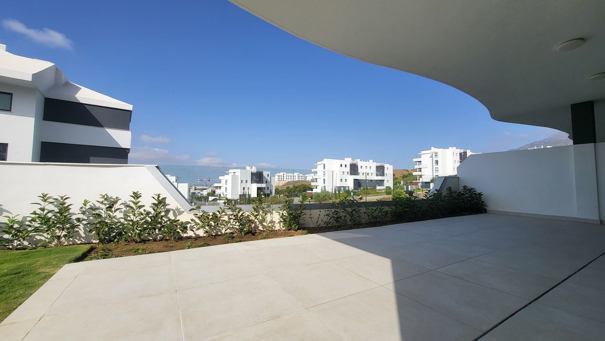 This brand new luxurious corner garden apartment is situated in the prestigious Higuerón West urbanization and features two bedrooms, two bathrooms, a generous living-dining area, and an open-plan kitchen that is fully furnished and equipped with electrical appliances. It also includes a laundry area with a washer/dryer. The living space boasts floor-to-ceiling sliding doors that open to a vast wrap around terrace of 35m2 offering urban, pool and partial sea views. Additionally, there is 68m2 of private garden and an outdoor shower. Spacious master bedroom with an en-suite bathroom and terrace of 18m2, perfect for enjoying the morning sunshine. The apartment is equipped with both hot and cold air conditioning, a video intercom, a home automation system, built-in wardrobes in the bedrooms, a pre-installed alarm system, and underfloor heating in the bathrooms. It also includes two parking spaces and one storage room.