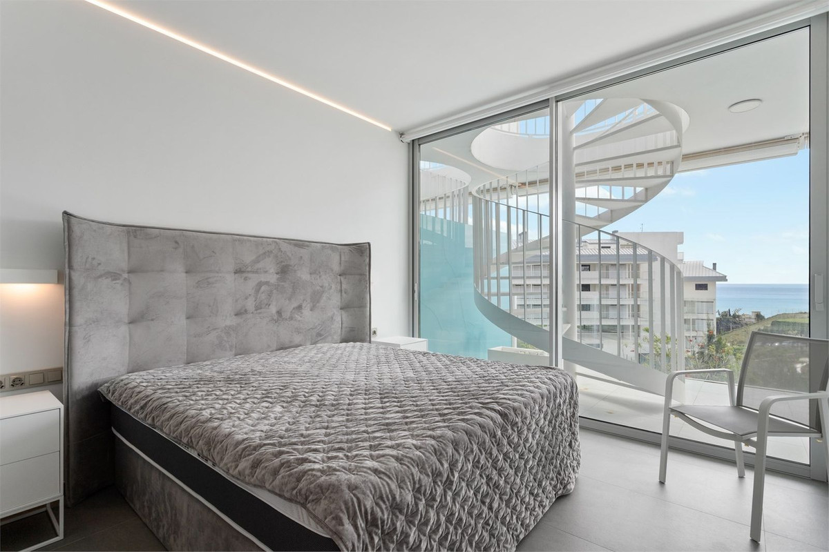The property has a modern style and offers two bedrooms and two bathrooms, one of which is en-suite. The open kitchen and living room create a spacious and inviting atmosphere. Through the sliding doors, we access a southwest-facing terrace of 22 sqm with an impressive view of the Mediterranean Sea. Additionally, there is a rooftop terrace of 107 sqm with an installed jacuzzi, perfect for relaxation. The community features a shared pool area where you can enjoy sunny days and refreshing dips. The property also includes two garage spaces and a spacious storage room. In Reserva del Higuerón, we find the Higuerón Hotel by Hilton and the Higuerón Sport Club. Here, world-class facilities are offered, including padel and tennis courts, a gym, a spa, a rooftop bar, and several prestigious restaurants. On foot, we also have Carvajal’s own train station, which connects between Fuengirola, the airport, and Malaga.
