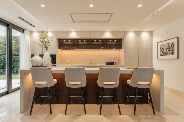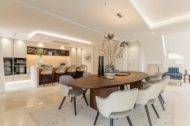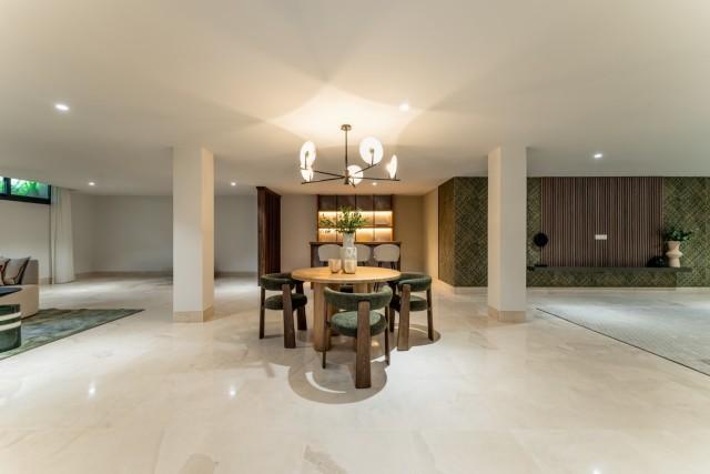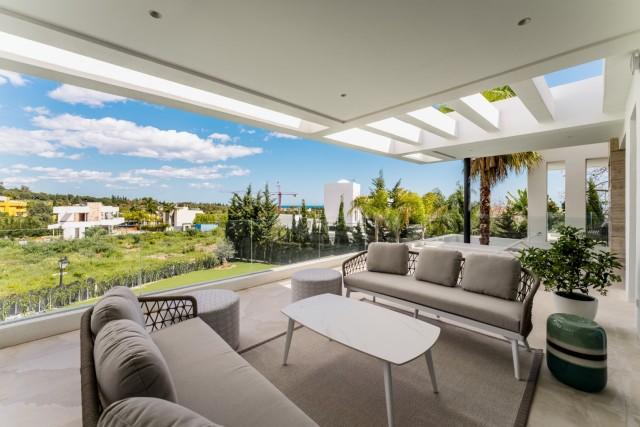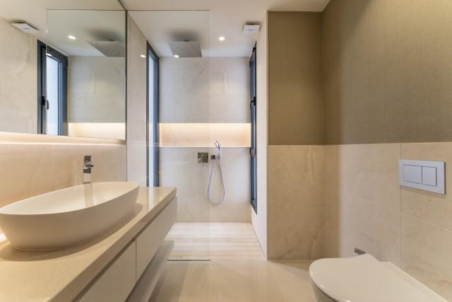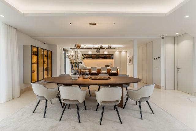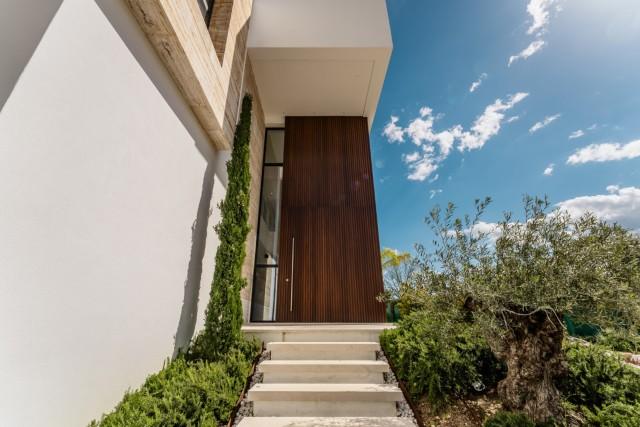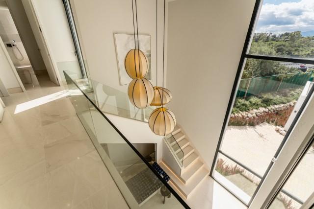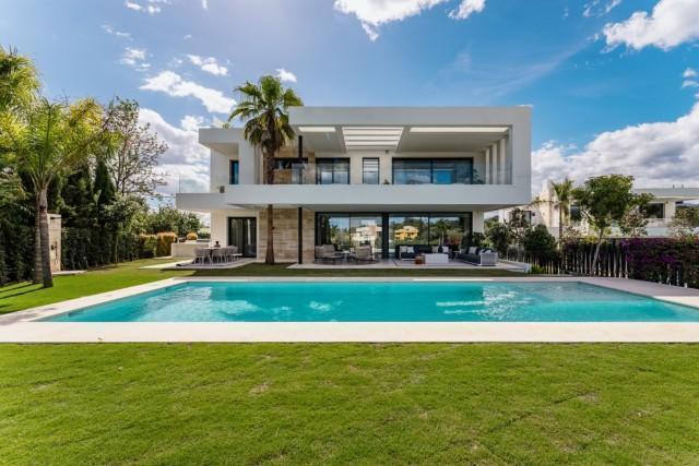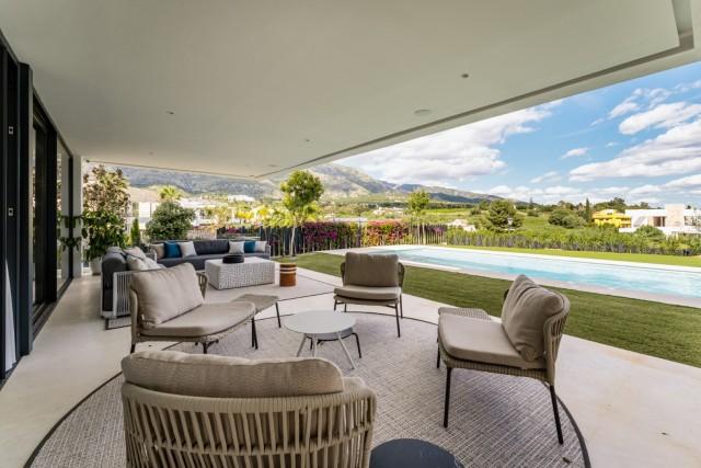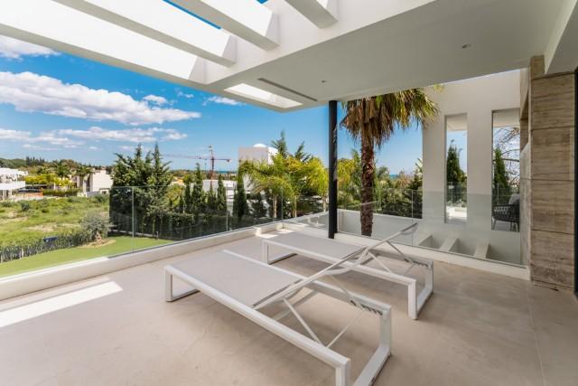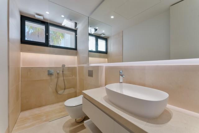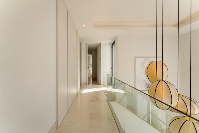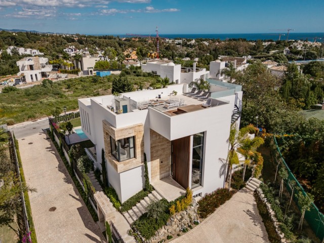 Ontdek deze prachtige moderne villa met 5 slaapkamers aan de prestigieuze Golden Mile van Marbella, gelegen in een exclusieve, beveiligde community. Deze luxe woning, ontworpen in 2024 door een gerenommeerde lokale architect, combineert moderne elegantie met een adembenemend panoramisch uitzicht op de zee en de bergen en biedt een ongeëvenaarde woonervaring. De villa, verdeeld over drie zorgvuldig ontworpen verdiepingen, heeft een bebouwde oppervlakte van 471 m² en 247 m² aan terrassen, een perfecte mix van comfort en verfijning. De vijf slaapkamers met eigen badkamer zijn privé-oases, waarvan drie zich op de eerste verdieping bevinden. Elk met directe toegang tot ruime terrassen die de binnen-buiten levensstijl van Marbella omarmen. De begane grond heeft een naadloze open indeling met een strakke, moderne keuken, een elegante eethoek en een gezellige open haard, allemaal badend in natuurlijk licht. Buiten bieden een weelderige tuin, een sereen privézwembad en een overdekt terras de perfecte setting om te ontspannen en gasten te ontvangen. Op de eerste verdieping bevindt zich de master suite, met een luxe badkamer en een goed ingerichte kleedkamer. Twee extra slaapkamers op deze verdieping bieden eveneens toegang tot het terras, met een schilderachtig uitzicht op het omliggende landschap. Het dakterras is een echte blikvanger, ontworpen voor ultiem genot met een jacuzzi en een adembenemend uitzicht op de kustlijn en de bergen van Marbella, ideaal om gasten te ontvangen of in stijl te ontspannen. De benedenverdieping van de villa vergroot de veelzijdigheid en biedt plaats aan twee extra slaapkamersuites, perfect voor gasten of een uitgebreid gezin. Deze ruimte biedt ook voldoende ruimte die kan worden aangepast als fitnessruimte, thuisbioscoop of speelkamer, waardoor de woning aan elke levensstijlbehoefte voldoet. Gunstig gelegen nabij essentiële diensten, luxe voorzieningen en restaurants en winkels van wereldklasse, en met 12-uurs beveiliging, biedt deze villa een unieke kans om te genieten van een ongeëvenaarde levensstijl op de felbegeerde Golden Mile van Marbella.