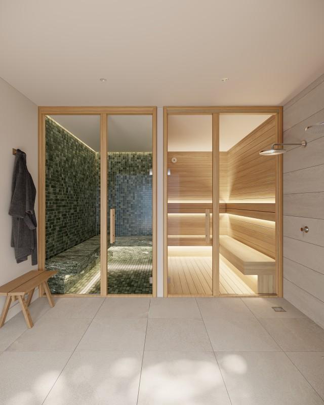 Airconditioning Warm/Koud Constructie van hoog niveau Gemeenschappelijke tuin Gemeenschappelijk zwembad Eigentijdse stijl Gelegen nabij golfterrein Scholen in de nabijheid Tennisbanen dichtbij Dubbele beglazing Volledig ingerichte keuken Inbouwkasten Lift Op loopafstand van strand Op loopafstand van cafes Gemeenschappelijk gymlokaal Sauna Turks bad Bergruimte