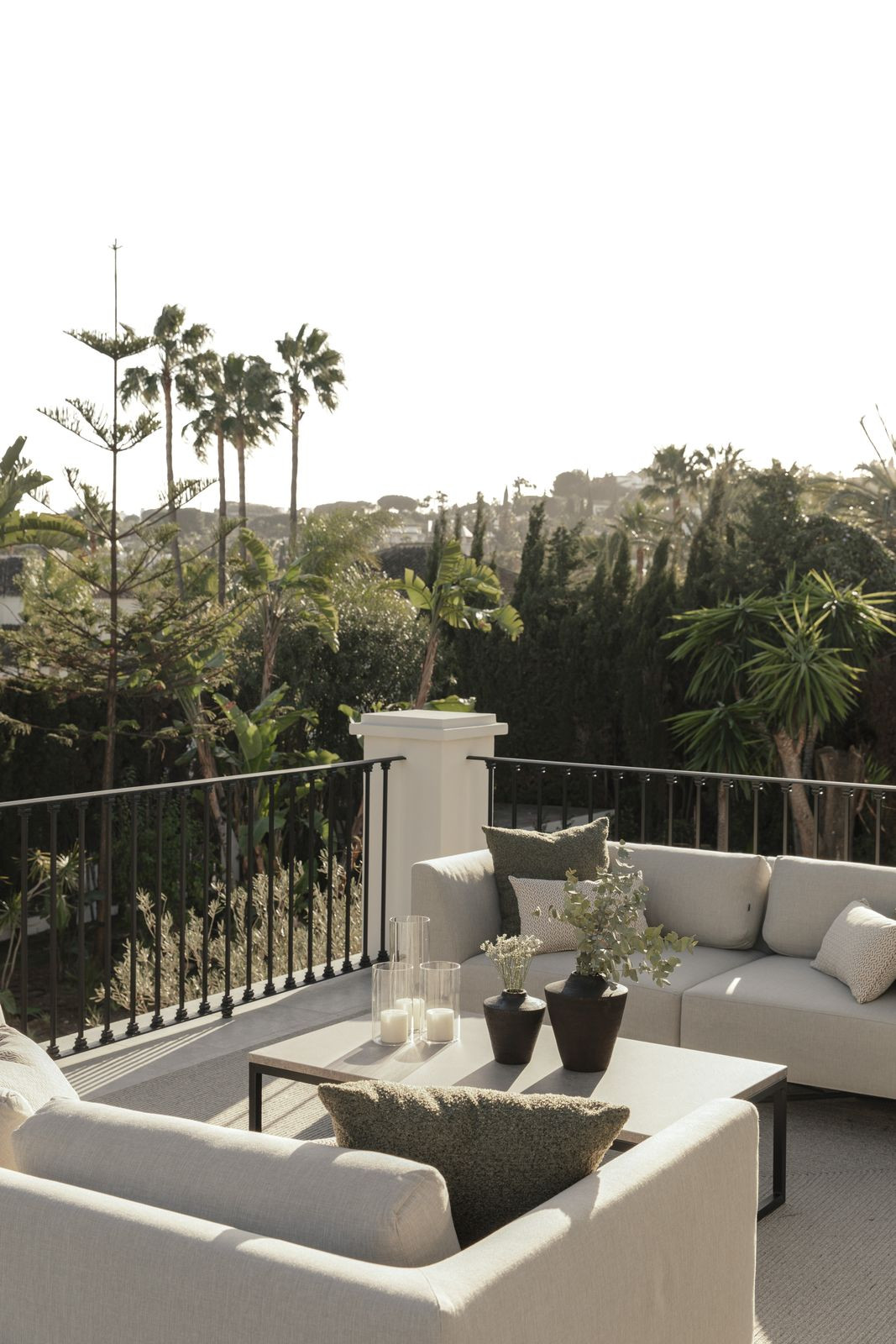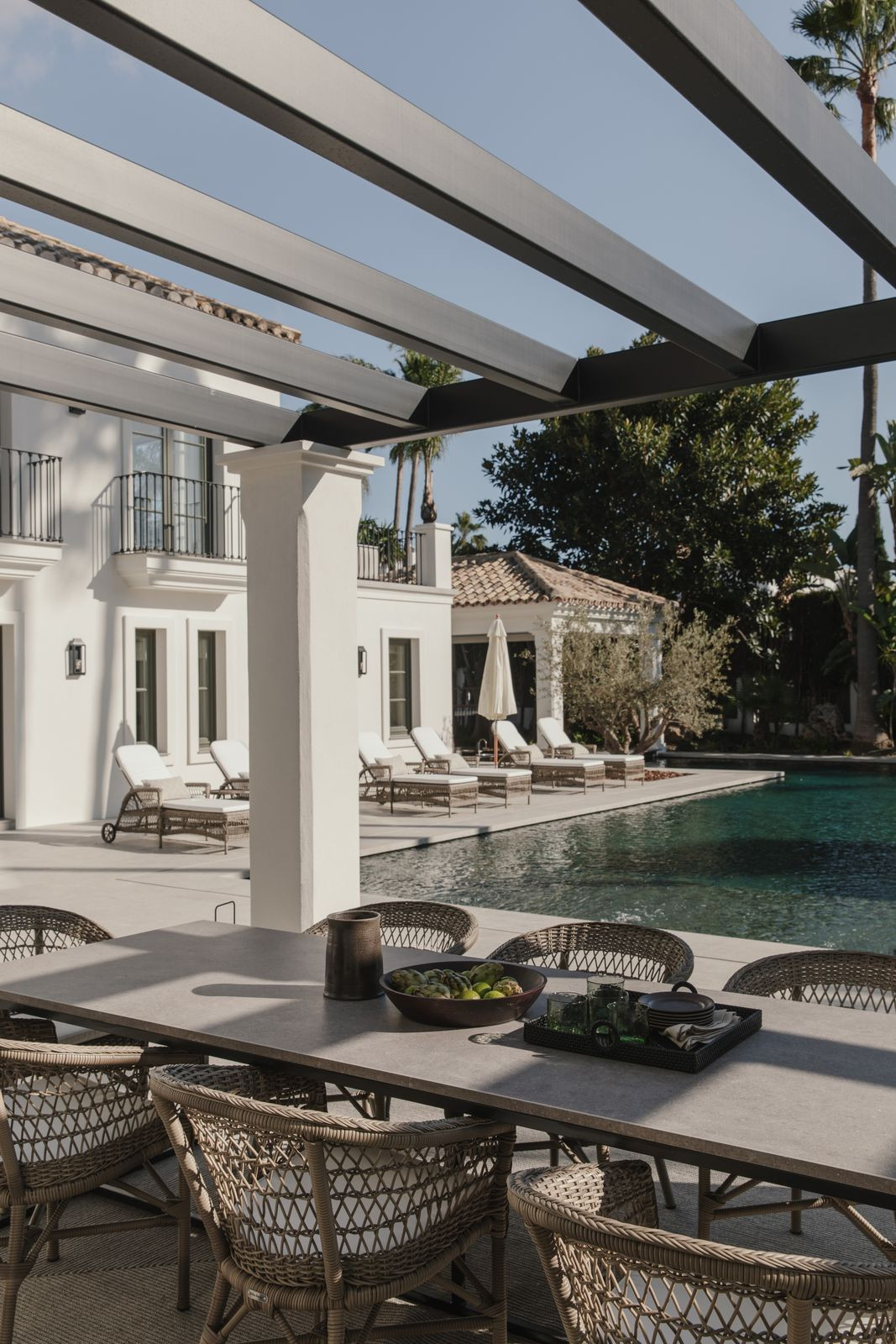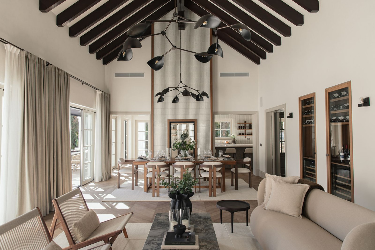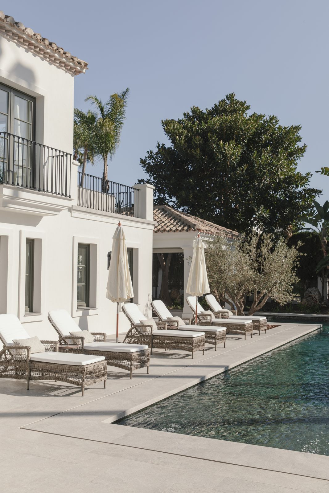 This outstanding property is a refined and soulful villa, thoughtfully crafted by renowned designers Puroform. Nestled in a prime location in Nueva Andalucía, this exquisite home perfectly blends sophisticated living with leisure and entertainment, offering a tranquil retreat in the heart of the Golf Valley. Recently built, the villa showcases outstanding craftsmanship and embraces a timeless French provincial aesthetic with elegant architectural features. Covered porches provide shaded lounge areas ideal for relaxing under the Mediterranean sun, while expansive terraces invite alfresco dining and laid-back social gatherings. A sunken chill-out area with a custom-designed bar beside the private pool creates the perfect setting for unforgettable summer evenings. At the heart of the home is a beautifully tailored kitchen, marrying functionality with high-end design. The open-plan living and dining area is a masterclass in contemporary interior design, featuring curated furnishings, a soothing neutral palette, and warm wooden details. High ceilings and direct access to the terrace enhance the indoor-outdoor flow, infusing the space with natural light and an airy ambiance. Villa Oasis is equipped with an array of bespoke amenities to elevate everyday living — including a private home office, a luxurious spa, and a fully equipped gym — making this villa a truly exceptional family residence designed for comfort, wellness, and effortless elegance.