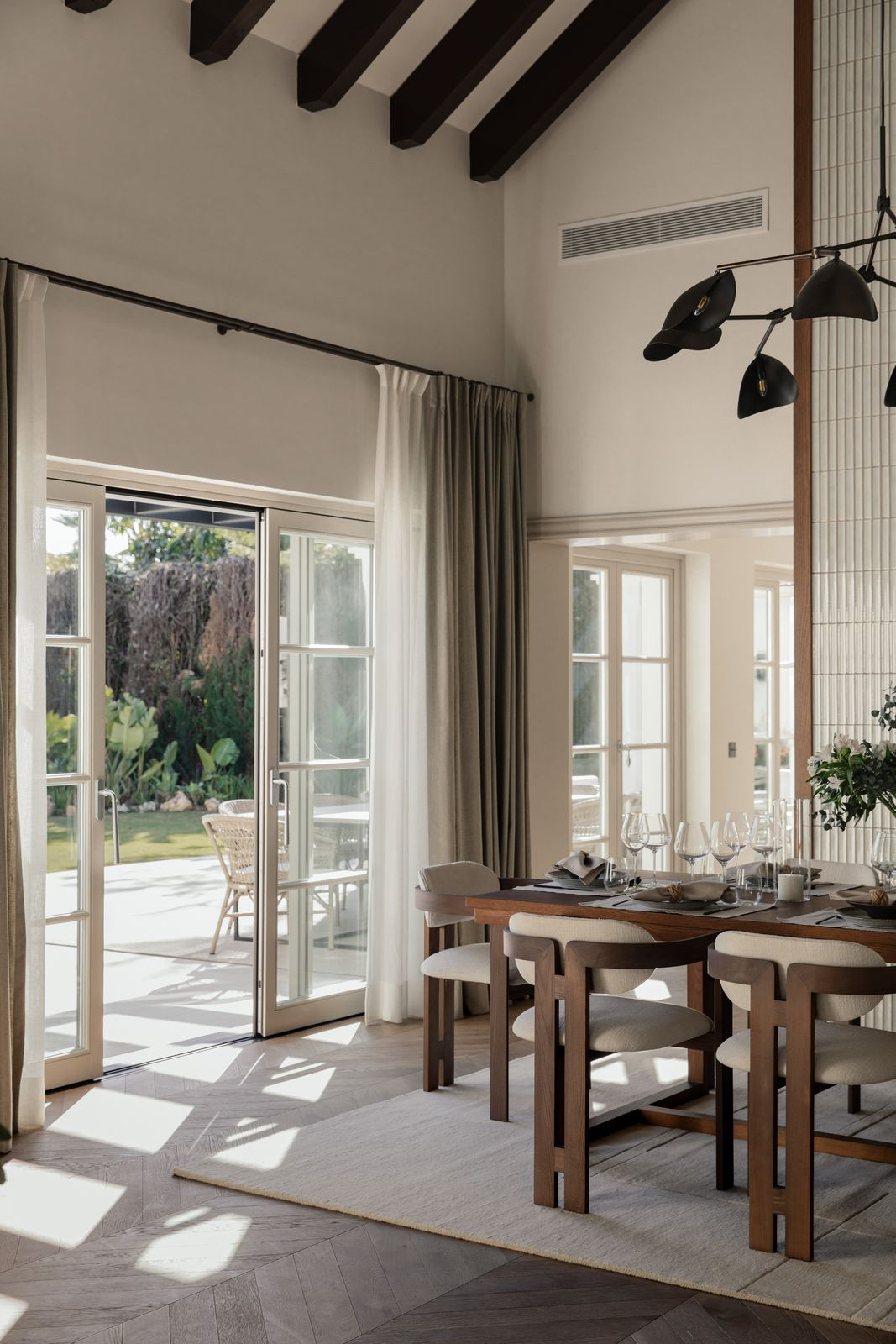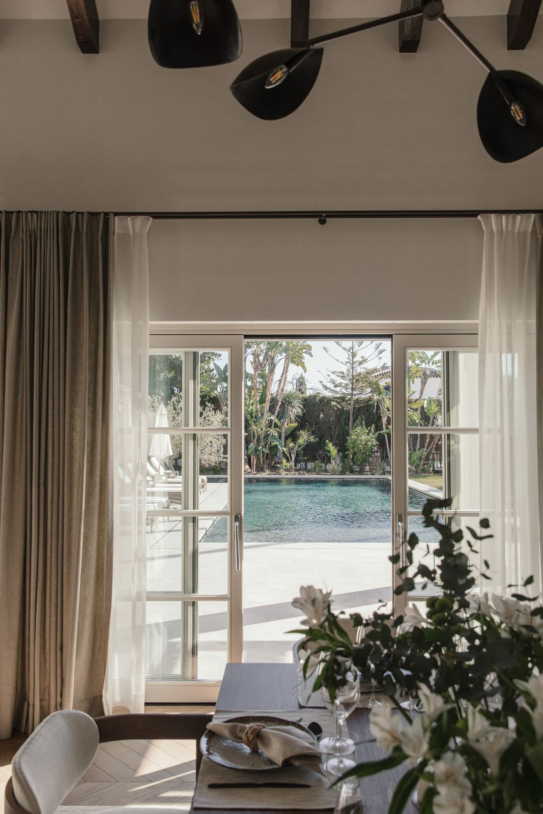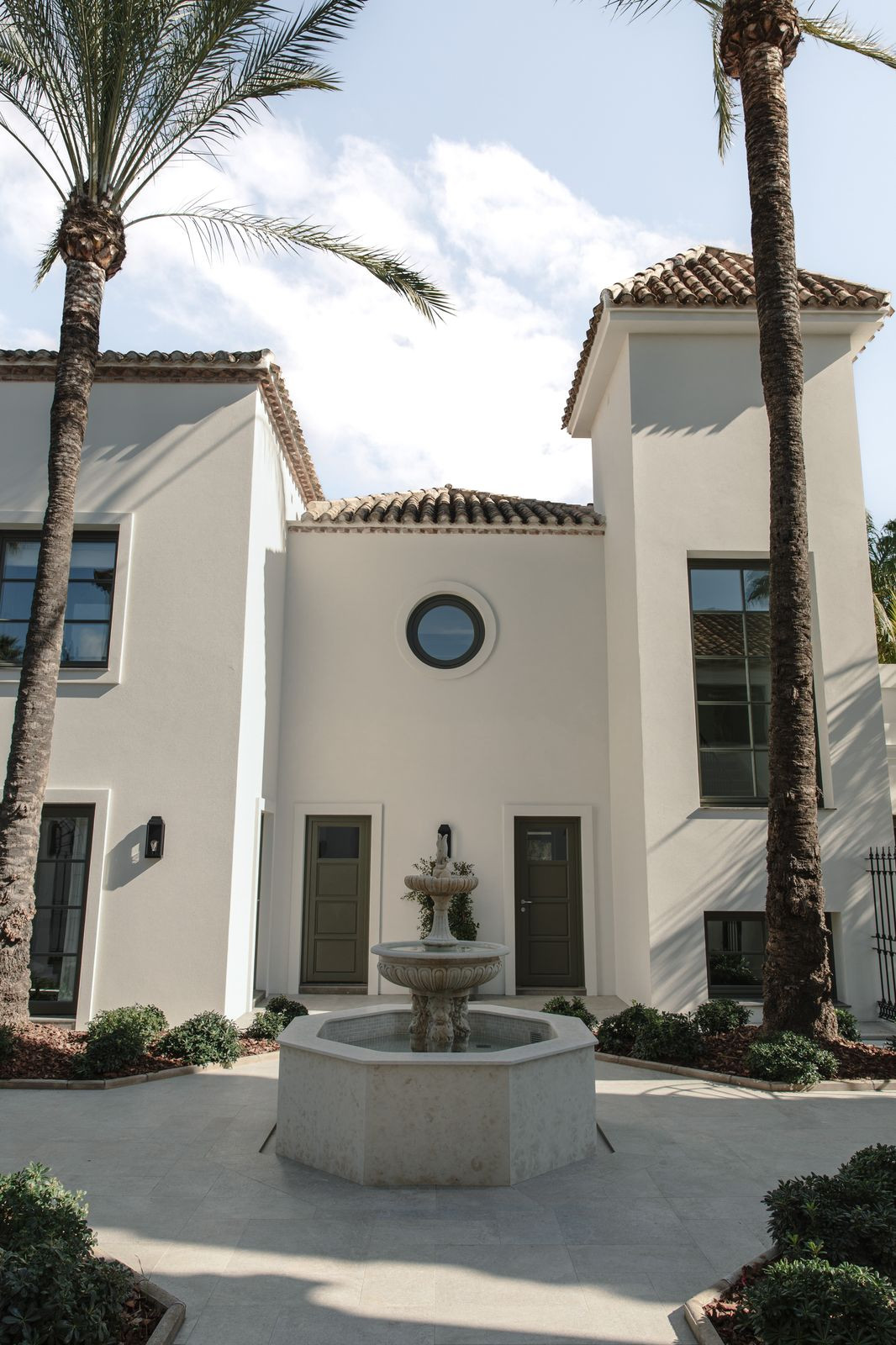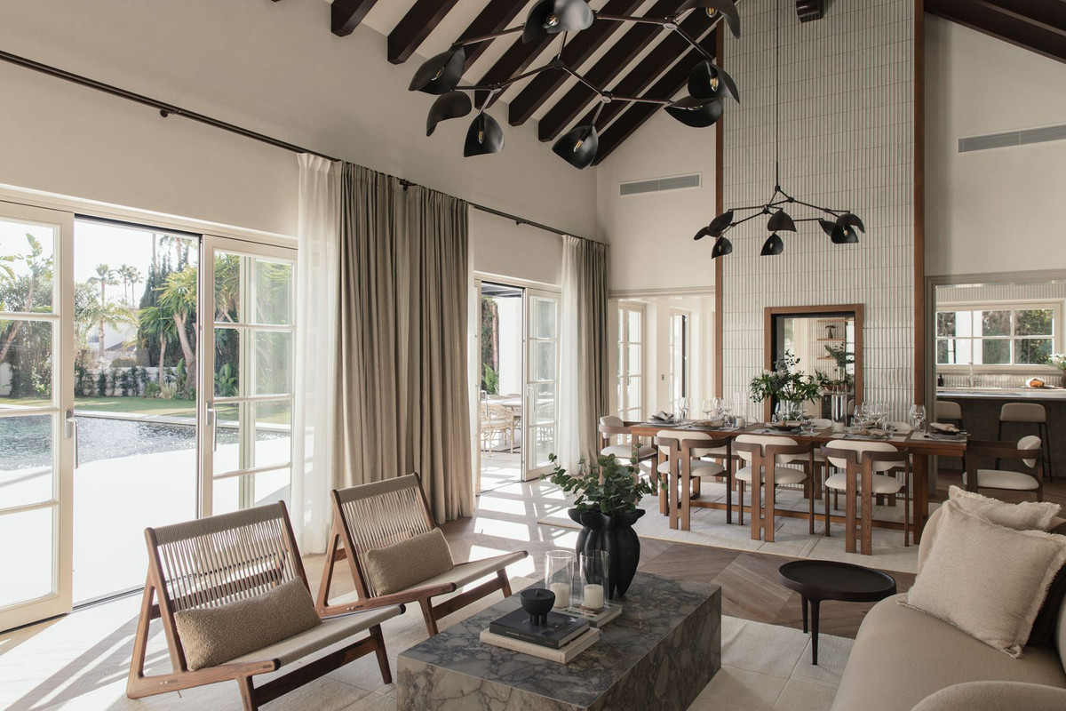 This outstanding property is a refined and soulful villa, thoughtfully crafted by renowned designers Puroform. Nestled in a prime location in Nueva Andalucía, this exquisite home perfectly blends sophisticated living with leisure and entertainment, offering a tranquil retreat in the heart of the Golf Valley. Recently built, the villa showcases outstanding craftsmanship and embraces a timeless French provincial aesthetic with elegant architectural features. Covered porches provide shaded lounge areas ideal for relaxing under the Mediterranean sun, while expansive terraces invite alfresco dining and laid-back social gatherings. A sunken chill-out area with a custom-designed bar beside the private pool creates the perfect setting for unforgettable summer evenings. At the heart of the home is a beautifully tailored kitchen, marrying functionality with high-end design. The open-plan living and dining area is a masterclass in contemporary interior design, featuring curated furnishings, a soothing neutral palette, and warm wooden details. High ceilings and direct access to the terrace enhance the indoor-outdoor flow, infusing the space with natural light and an airy ambiance. Villa Oasis is equipped with an array of bespoke amenities to elevate everyday living — including a private home office, a luxurious spa, and a fully equipped gym — making this villa a truly exceptional family residence designed for comfort, wellness, and effortless elegance.