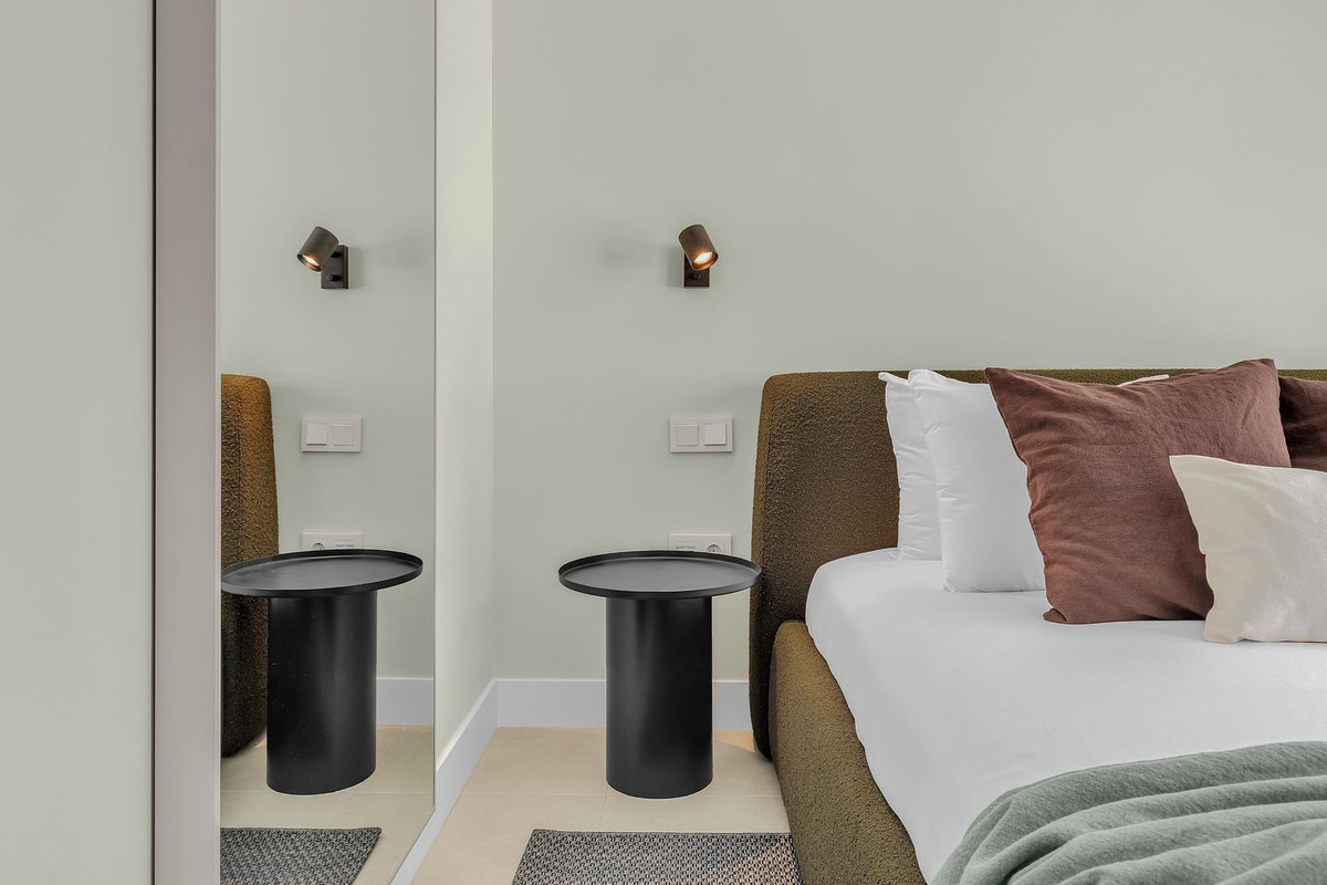 Middle Floor Apartment, Fuengirola, Costa del Sol. 3 Bedrooms, 3 Bathrooms, Built 93 m², Terrace 26 m². Price includes full Furniture, value 30,000€ Setting : Urbanisation. Orientation : South. Condition : Excellent, New Construction. Pool : Communal. Climate Control : Air Conditioning. Views : Sea. Features : Lift, Fitted Wardrobes, Private Terrace, Storage Room, Double Glazing. Furniture : Optional. Kitchen : Fully Fitted. Garden : Communal. Security : Gated Complex, Entry Phone, 24 Hour Security. Parking : Underground. Category : Luxury, Contemporary.