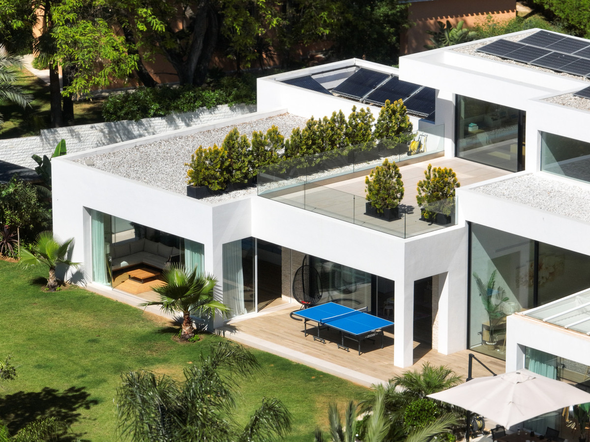 This exquisite, newly constructed 7-bedroom mansion offers an unparalleled living experience in El Paraiso, nestled on the coveted New Golden Mile of Estepona. This exclusive estate harmoniously combines modern luxury with pristine natural surroundings, perfectly situated to capture the essence of high-end coastal living. Minutes from prominent golf courses, acclaimed sandy beaches, and top international schools, the property’s location offers a seamless blend of convenience and tranquillity. Nearby are vibrant restaurants, sophisticated bars, upscale supermarkets, and boutiques, alongside equestrian centres, ensuring that every amenity is within easy reach. It’s just a short drive to the lively destinations of San Pedro, the renowned marina of Puerto Banus, and the Golf Valley of Nueva Andalucia, as well as Estepona’s charming town centre. Set within an expansive 3,397 m² plot, the property is a masterpiece of contemporary architecture, surrounded by a professionally landscaped garden that exudes serenity. Green lawns stretch alongside a private tennis/paddle court and a striking 25-metre swimming pool, with features like an infinity edge, a Jacuzzi, and a swim-against-the-current system, offering ample space for both recreation and relaxation. The villa itself spans a substantial 1,497m² and showcases a refined modern aesthetic that merges clean lines with upscale finishes. The interior spaces are meticulously designed to enhance comfort, with spacious, open-plan living and dining areas that connect seamlessly to extensive terraces, where panoramic views of the gardens and distant mountains can be enjoyed. The interior layout is crafted with both family living and entertaining in mind. The main floor opens into a grand lobby, leading to a formal dining area, a lounge featuring a sophisticated fireplace, and a sleek, fully-fitted kitchen with an expansive island and breakfast nook. On this floor, you’ll find the magnificent master suite, complete with a private dressing area and en-suite bathroom. Additionally, three family bedrooms each come with their own bathrooms, alongside a convenient service bedroom. The wellness area provides an indulgent escape, featuring a Jacuzzi, a Turkish bath, a sauna, shower facilities, and a gym, creating the ideal sanctuary for relaxation. A sculptural staircase leads to the upper floor, where a guest suite with an adjoining bathroom, an office, a dressing room, and access to the terraces await, providing a private retreat for guests or residents seeking a quiet workspace. The basement is designed for functionality and entertainment, offering a spacious garage with room for up to six cars, as well as utility and storage spaces. Entertainment rooms in the basement expand options for leisure, making it the perfect space for gatherings and personal enjoyment. Outside, the residence's impressive terraces and lounging areas offer versatile spaces for al fresco dining, sunbathing, and outdoor entertaining, complete with a Balinese-inspired chill-out area, a professional-grade trampoline, and a gas BBQ setup. Whether enjoying a relaxing evening by the pool or hosting a summer barbecue, the outdoor spaces elevate the Mediterranean lifestyle, set against a backdrop of tranquil gardens. Complementing the main residence is a 500 m² guest house designed with the same level of luxury, featuring two bedrooms with dressing rooms and en-suite bathrooms, a spacious living area with a modern kitchen, a private terrace, and its own pool. This addition ensures privacy for guests or can serve as staff accommodation, making it a versatile extension of the property. Built with eco-friendly principles, the villa incorporates the latest advancements in home automation, underfloor heating with parquet floors, and sophisticated ceiling designs. Energy-efficient LED lighting and air conditioning systems are seamlessly integrated, and high-speed internet and Wi-Fi connectivity are available throughout the property. Large fitted wardrobes, expansive glass doors, and tasteful design elements add to the home’s functionality and aesthetic appeal. El Paraiso is renowned for its luxurious villas and manicured landscapes, providing an environment of prestige and exclusivity. Known for its community of grand residences, the neighbourhood attracts those seeking refined architecture and privacy in a well-established locale. Nearby amenities include the scenic El Paraiso Golf Club, a highlight for golf enthusiasts, and the well-known Laguna Village shopping centre with high-end boutiques and restaurants along the beachfront. The property’s prime position allows for easy access to Estepona’s golden beaches and a variety of leisure and lifestyle options, making it a highly desirable area for both primary residence and holiday home living.