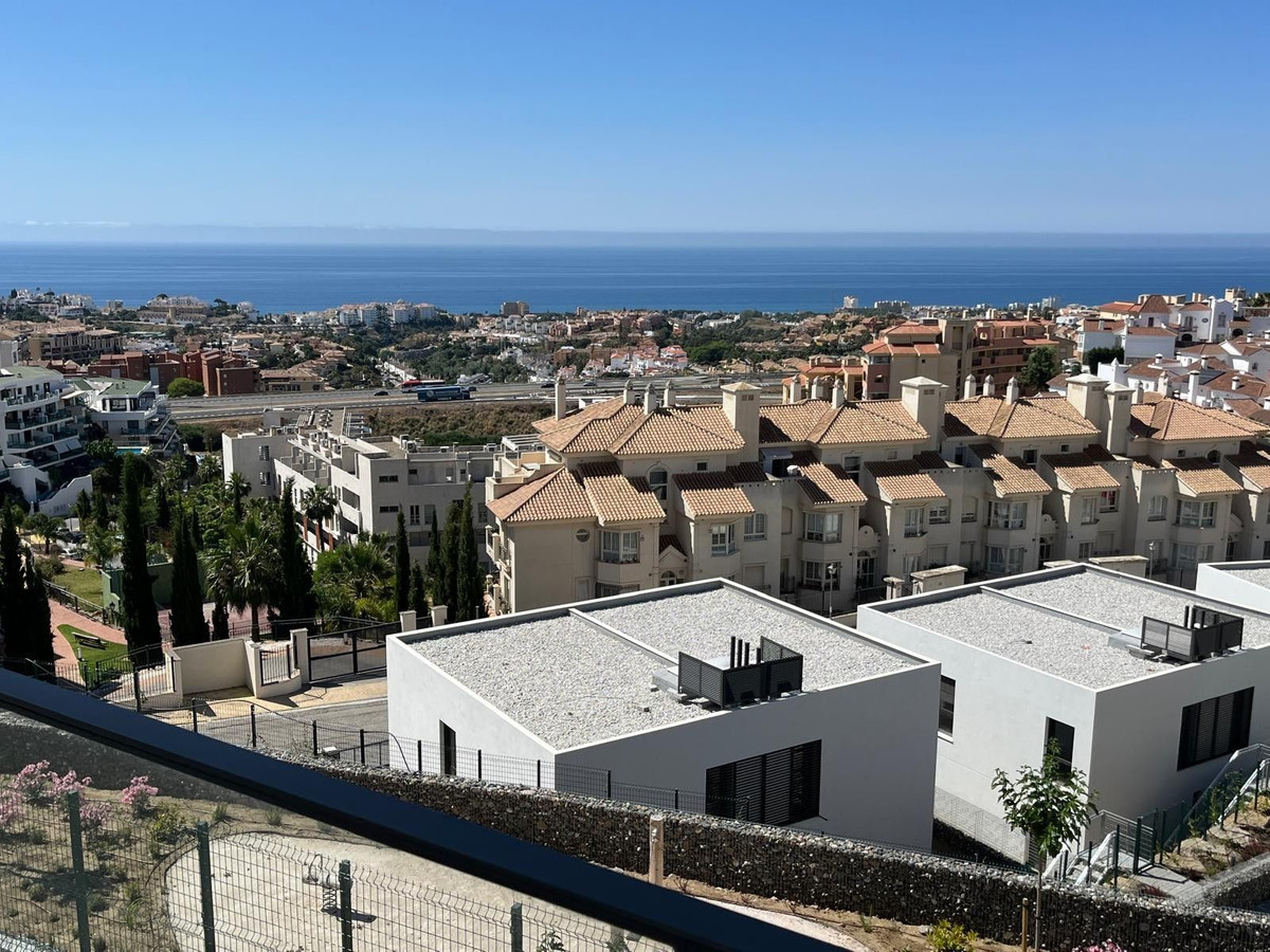 NEW SEMI-DETACHED HOUSE WITH BEST THE VIEW & LOCATION. Newly built semi-detached house in Reviera Del Sol with a fantastic panoramic view and a really good location. The house was completed in December 2024 and is on 2 floors and a small garden (123m2). There is a private parking space with space for 2 cars. You enter the upper floor of the house, where you have an entrance hall and a guest toilet and then you go into the kitchen and living room and from the living room you have a fantastic panoramic view of the sea. In extension of the living room there is a 24m2 terrace that is southwest facing, so with lots of sun. From the living room you go down a good large straight staircase to the lower floor, where you have a good large entrance hall with separate access to the garden, in addition there are 3 bedrooms and 2 bathrooms, one en suite. One bathroom has a bathtub and the other has a shower cabin. There is also a large closet where you have a drain and water for a washing machine. There is also space for a vacuum cleaner, etc. From the house's hallway on the ground floor there is access to the garden, where there is a smaller covered terrace of 8m2 and in addition a garden of 115m2. From the garden you have a nice panoramic view of the sea. From the garden there is a locked gate, where you can go to a communal pool/fitness area as well as a Co-working area and gym. There is also a play area for children. The beach is 2.7 km away. This house is really worth taking a closer look, so please contact us for a viewing.
