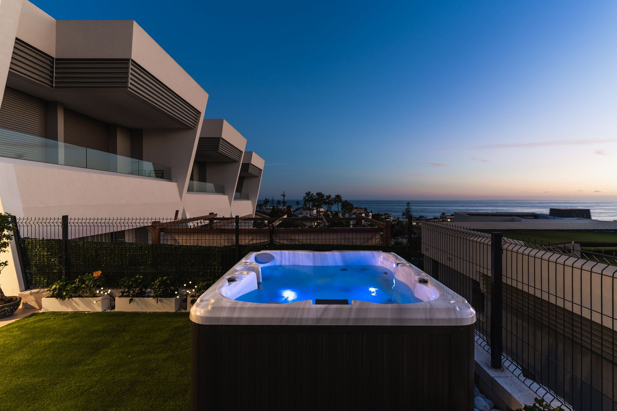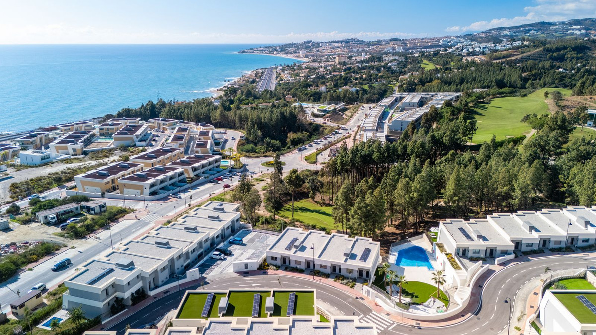 Modern Elegance with Panoramic Sea Views – El Chaparral Discover the perfect blend of style, comfort, and location in this stunning 3-bedroom townhouse, part of the exclusive development in Mijas Costa. Designed to elevate everyday living, this home offers a seamless balance of high-end design and everyday functionality. Step into a bright, spacious interior, where oversized triple-aspect windows flood the space with natural light and frame panoramic views of the Mediterranean. The open-plan layout features a state-of-the-art, custom-fitted kitchen and a beautifully styled living area that opens onto a large terrace with a private Jacuzzi—an ideal place to relax while enjoying uninterrupted sea views. The home is sold fully furnished, curated by renowned designer Loriini with every detail—furniture, finishes, and décor—selected to create a cohesive, sophisticated space. Premium materials are used throughout, including high-quality porcelain flooring, Cortizo windows, and electric aluminium shutters. An aerothermal heating/cooling system ensures year-round comfort. Eden by Kronos is more than just a place to live—it’s a lifestyle. Residents enjoy access to exclusive community amenities including: -A spectacular communal pool with sea views -Eden Sport Club, featuring a gym, tennis court, spa (with Jacuzzi, sauna, Turkish bath, waterfall shower), and co-working spaces -Landscaped gardens and security cameras throughout -Concierge service onsite during the day Location Highlights: Set in the tranquil and prestigious El Chaparral area, the home is just a short walk from: -El Chaparral Golf Club -The beach with lifeguard station and beach bars -Local restaurants offering Spanish, Indian, Italian, Scandinavian, and international cuisine -Supermarkets, pharmacy, vet clinic, sports bars, and live music venues Accessibility: -Málaga Airport: 20 min -La Cala de Mijas: 4 min -Fuengirola: 5–7 min -Marbella Centre: 25–30 min -Waterpark: 10 min -Shopping Mall: 6 min -Public bus stop (to Marbella, La Cala, and Fuengirola): 3 min walk -Closest train station: Fuengirola This home is ideal for anyone seeking a luxury residence, a high-return investment, or a turnkey holiday escape. Whether relaxing in your private Jacuzzi or enjoying the amenities of a resort-style community, this is Costa del Sol living at its best.