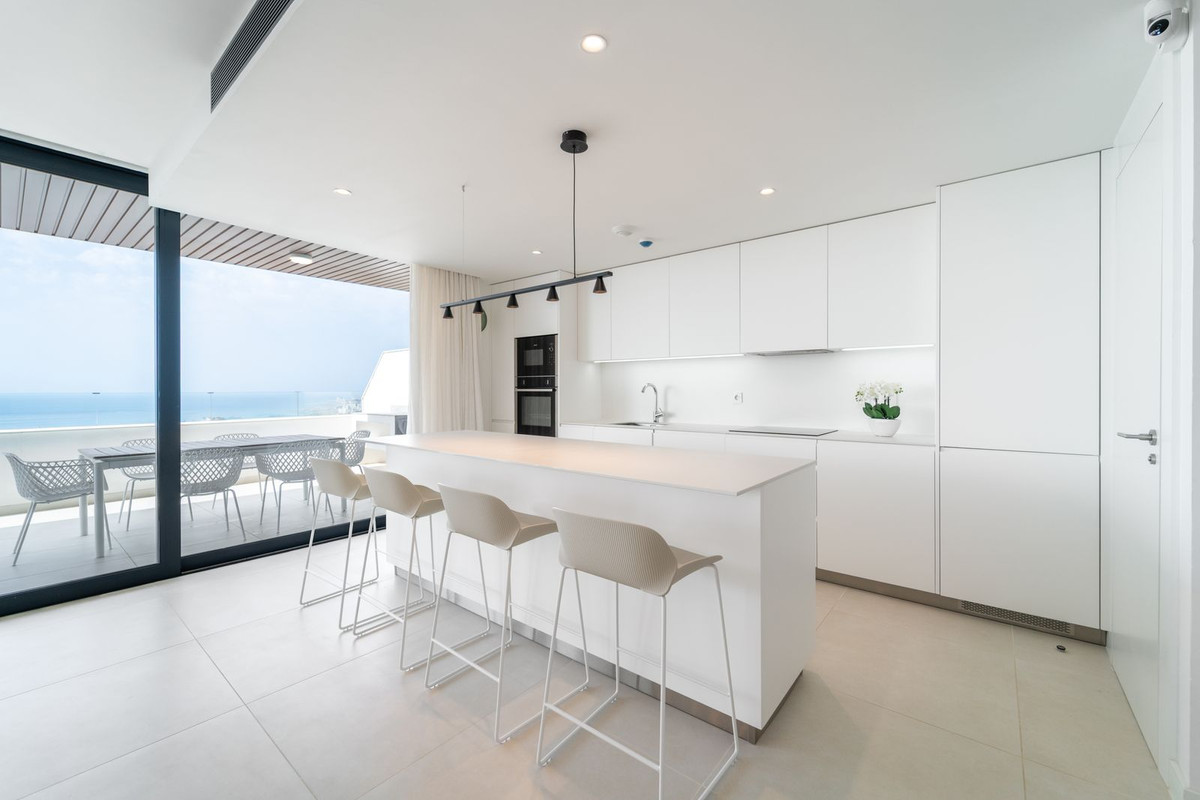 | Setting: Close To Sea, Urbanisation Orientation: South Condition: Excellent, New Construction Pool: Communal Climate Control: Air Conditioning Views: Sea, Mountain, Panoramic Features: Covered Terrace, Lift, Fitted Wardrobes, Private Terrace, Gym, Paddle Tennis, Tennis Court, Storage Room, Utility Room, Ensuite Bathroom, Access for people with reduced mobility, Double Glazing, Domotics Furniture: Optional Kitchen: Fully Fitted Garden: Communal Security: Gated Complex, Entry Phone, 24 Hour Security Parking: Underground, More Than One Utilities: Electricity, Drinkable Water Category: Luxury, Resale |