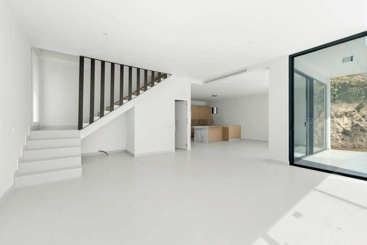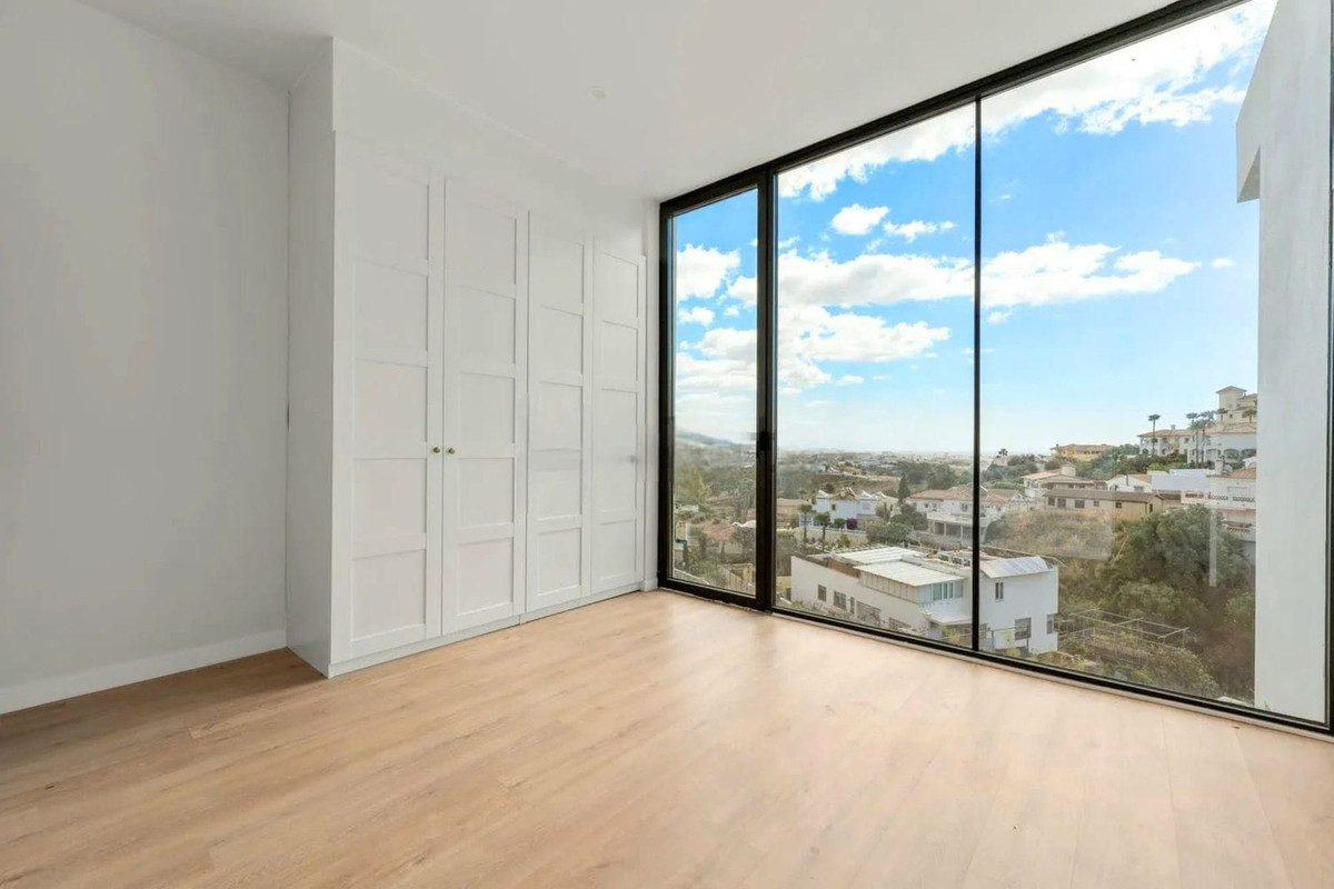 Brand new luxury and modern villa completed end of 2024 for sale in Cerros de Águila, Mijas from private owner. A stone throw away from the largest park in Málaga opening very soon. The property is located at the back of Cerros de Águila on a Cul de sac with 5 villas with their own separate entrances. It has fantastic panoramic views over the urbanisation, sea and mountains, there are a few bars and restaurants in the complex. Only a 10 minute drive to the beach, close to golf and shopping. The villa has 3 floors with high ceilings throughout, basement level there is a versatile area that you can use as you wish along with parking your cars, you can easily fit 2 bedrooms and a bathroom here, there is large windows for natural light. On the first floor via stairs, you have a nice open living / dining room and fully fitted kitchen with top-quality appliances and with so much natural light coming from the huge windows / doors which accesses the terrace, pool area and garden. There is a downstairs toilet on this level. Up to the second floor, there are 3 double bedrooms with two en suite bathrooms with huge showers, the third bathroom en suite is pre fitted, all have air conditioning and fitted wardrobes. You are only a 20 minute drive to Málaga airport and 25 to Marbella. For more information, contact us for a viewing. A must see!