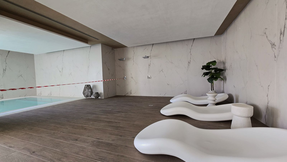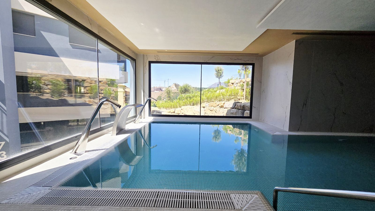 Setting: Close To Golf, Close To Sea, Close To Town, Close To Schools, Urbanisation Orientation: South, South West Condition: Excellent Pool: Communal, Indoor, Heated Climate Control: Air Conditioning, Hot A/C, Cold A/C Views: Sea, Mountain, Panoramic, Garden, Pool Features: Covered Terrace, Lift, Fitted Wardrobes, Private Terrace, Gym, Sauna, Storage Room, Utility Room, Ensuite Bathroom, Marble Flooring, Double Glazing Furniture: Part Furnished Kitchen: Fully Fitted Garden: Communal Security: Gated Complex Parking: Underground, Communal Utilities: Electricity, Drinkable Water Category: Luxury, Contemporary