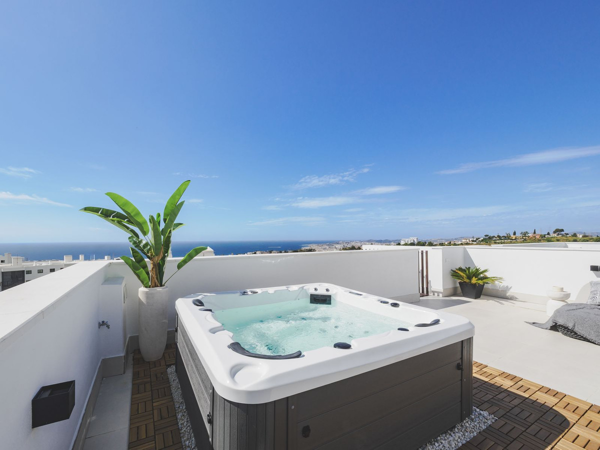 This spectacular brand new penthouse, located in one of the best areas of the exclusive El Higuerón. The property is part of an exclusive residential complex of only 36 homes, with the maximum amenities in the area. Among the services offered by the common areas, it is worth mentioning a saltwater Infinity pool, gym, coworking space and sauna. The property consists of 2 spacious bedrooms. The designer kitchen is open to the living room. From the living-dining-kitchen room, we have access to the main terrace of 27m2, and from this terrace we access the solarium floor, where we have a barbecue and a jacuzzi for 4 people. Back inside we find the two bedrooms, the main one with an "en suite" bathroom and the secondary bathroom. The property includes two parking spaces and a storage room. The urbanization is located in an exclusive area, with all services: Restaurants, Spa, gym, swimming pools and outdoor sports areas. Now you have the home you want on the Costa del Sol. Perfectly connected, close to the AP 7 highway and the beach; 15 minutes from the Airport, 25 minutes from Malaga Center and 30 minutes from Marbella. In the urbanization there is a train station, which connects with Fuengirola, Malaga-Centro and Malaga Airport. The expenses derived from the sale are not included in the price (taxes, notary, registration, agency, etc. ). Don't miss this opportunity!