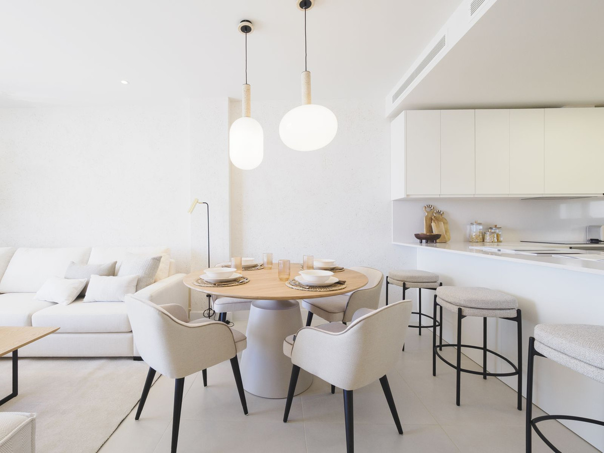 Setting: Town, Commercial Area, Beachside, Close To Shops, Urbanisation Orientation: South Condition: Excellent, New Construction Pool: Communal Climate Control: Air Conditioning, U/F Heating, U/F/H Bathrooms Views: Sea, Mountain, Pool Features: Covered Terrace, Lift, Fitted Wardrobes, Private Terrace, Gym, Paddle Tennis, Tennis Court, Ensuite Bathroom, Jacuzzi, Double Glazing, Domotics Furniture: Fully Furnished Kitchen: Fully Fitted Garden: Communal Security: Gated Complex Parking: Underground, Covered, Private Utilities: Electricity, Drinkable Water, Telephone Category: Luxury