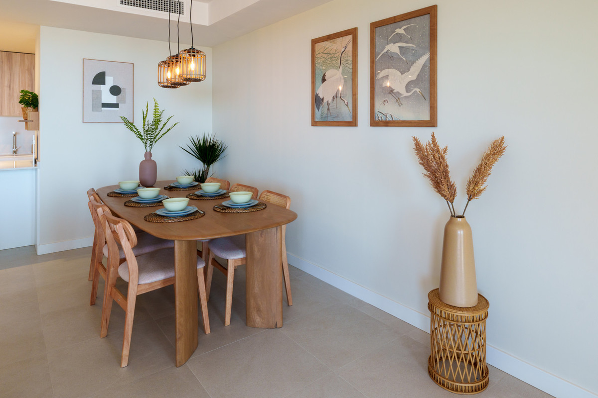 | Setting: Close To Shops, Close To Sea, Close To Town, Close To Schools Orientation: South Condition: New Construction Pool: Communal, Heated Climate Control: Air Conditioning, U/F/H Bathrooms Views: Sea, Mountain, Country, Panoramic, Street Features: Covered Terrace, Lift, Fitted Wardrobes, Private Terrace, Gym, Sauna, Storage Room, Utility Room, Ensuite Bathroom, Jacuzzi, Barbeque, Double Glazing Furniture: Fully Furnished Kitchen: Partially Fitted, Kitchen-Lounge Garden: Communal Security: Gated Complex, Electric Blinds, Entry Phone Parking: Private |