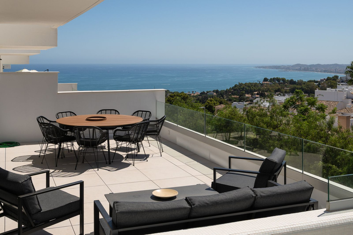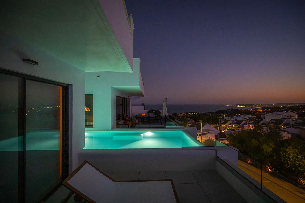 Contemporary Coastal Luxury State-of-the-Art Villa in Exclusive Urbanization Marae, Benalmádena Costa with Valid Tourist Licence in Place Welcome to this stunning fusion of cutting-edge design, breathtaking views, and luxury living, nestled within the highly coveted Urbanization Marae in Benalmádena Costa. This sophisticated villa offers an unrivalled lifestyle of elegance, privacy, and panoramic beauty perfect as a full-time residence, luxury holiday home, or premium investment opportunity. Striking Design & Seamless Layout Boasting 4 spacious double bedrooms, each with its own luxurious en-suite bathroom, this home has been thoughtfully designed to blend high-end comfort with exceptional functionality. An additional guest WC adds convenience for visitors. From the moment you step through the door, you're met with uninterrupted, jaw-dropping sea views that stretch across the Bay of Fuengirola, the Mediterranean Sea, and the mountains of Benalmádena Pueblo. Thanks to floor-to-ceiling windows, the villa is drenched in natural light, creating a calm and uplifting ambience throughout. Ground Level Living at Its Finest The heart of the home is a state-of-the-art, open-plan kitchen, dining, and living area, where modern aesthetics meet comfort and functionality. The space flows effortlessly onto a sunny south-facing terrace, perfect for alfresco dining and entertaining under the stars. Step outside and unwind in your own 18m² private pool, complete with pre-installation for a heating system, allowing for year-round enjoyment. Also on this level is one of the two impressive master suites, featuring a sleek en-suite bathroom and walk-in wardrobe. A separate utility area keeps daily tasks discreetly out of view. Elegant Upper-Level Retreats The upper floor welcomes you with three additional en-suite bedrooms, all of which enjoy access to a generous terrace where you can start and end your day with those same magical vistas over the coast and countryside. Smart Living & Premium Finishes Every inch of this home is curated for luxury and ease, with an array of high-spec features that elevate it far beyond the ordinary: Ceiling-integrated rainfall shower heads Customized lighting schemes, including perimeter lighting in the living room and both master suites Water-based underfloor heating throughout for cozy winters Electric blinds in every room for effortless privacy Smart lock system with remote app control Upgraded electrical system (boosted from 11.1kW to 14.9kW, single phase) Pre-installation for pool heating system Lifestyle & Community Amenities As part of the prestigious Marae community, residents also enjoy access to a communal pool, a hobby area, and a fully equipped gym adding further value and convenience to this incredible property. Location Highlights: Minutes from Benalmádena’s beaches, vibrant marina, popular beachfront restaurants including Yucas and El Trocadero Close to Benalmádena Pueblo, with its charming cafés, stylish eateries and cultural appeal Easy access to Málaga Airport, international schools, golf courses, and major transport links Norwegian, Swedish, Finish and International Schools all within a 10 minute drive away Villa Marae is a home designed to impress and built to enjoy a flawless blend of form, function, and flow, offering coastal luxury at its absolute finest. Whether you're seeking a tranquil family residence, a Mediterranean escape, or a secure investment, this property is the epitome of modern elegance on the Costa del Sol.