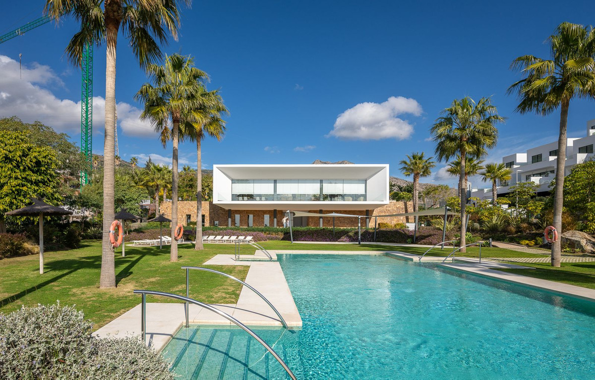 Setting: Village, Close To Golf, Close To Shops, Close To Town, Close To Schools, Urbanisation Orientation: South, South West, West Condition: Excellent, New Construction Pool: Communal, Private Climate Control: Air Conditioning, Pre Installed A/C, Hot A/C, Cold A/C, U/F Heating, U/F/H Bathrooms Views: Sea, Mountain, Country, Panoramic, Garden, Pool, Forest Features: Fitted Wardrobes, Near Transport, Private Terrace, Gym, Storage Room, Utility Room, Ensuite Bathroom, Double Glazing, Fiber Optic Furniture: Fully Furnished, Optional Kitchen: Fully Fitted Garden: Communal, Landscaped, Easy Maintenance Security: Gated Complex Parking: Underground, Garage, Covered, More Than One, Private Utilities: Electricity Category: Investment, Luxury, Resale