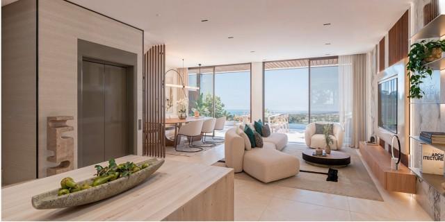 Uitzicht op bergen Uitzicht op zee Eigentijdse stijl Moderne stijl Licht Ruime accommodatie Vlak bij openbaar vervoer Vlakbij voorzieningen Op loopafstand van strand Op loopafstand van cafes Op loopafstand van restaurants 5-10 minuten van golfbaan Gelegen nabij golfterrein Scholen in de nabijheid Dicht bij scholen Gemeenschappelijke tuin Subtropische tuinen Aangelegde tuin Volledig ingerichte keuken Ondergrondse parkeerruimte Bergruimte Lift Gemeenschappelijk zwembad Dubbele ramen Garderobe voor gasten Inbouwkasten Entree met video systeem Smart Home Aerothermal Vloerverwarming in badkamers Spa Gemeenschappelijk gymlokaal
