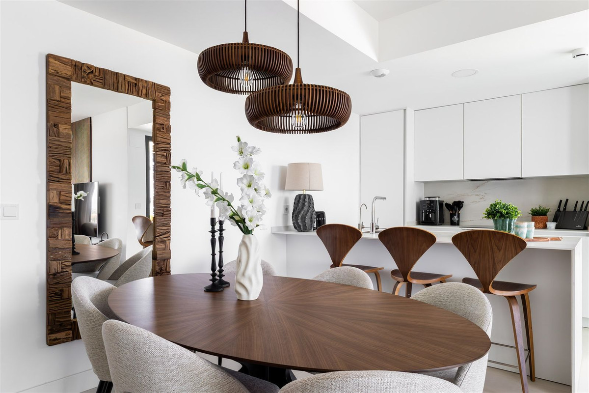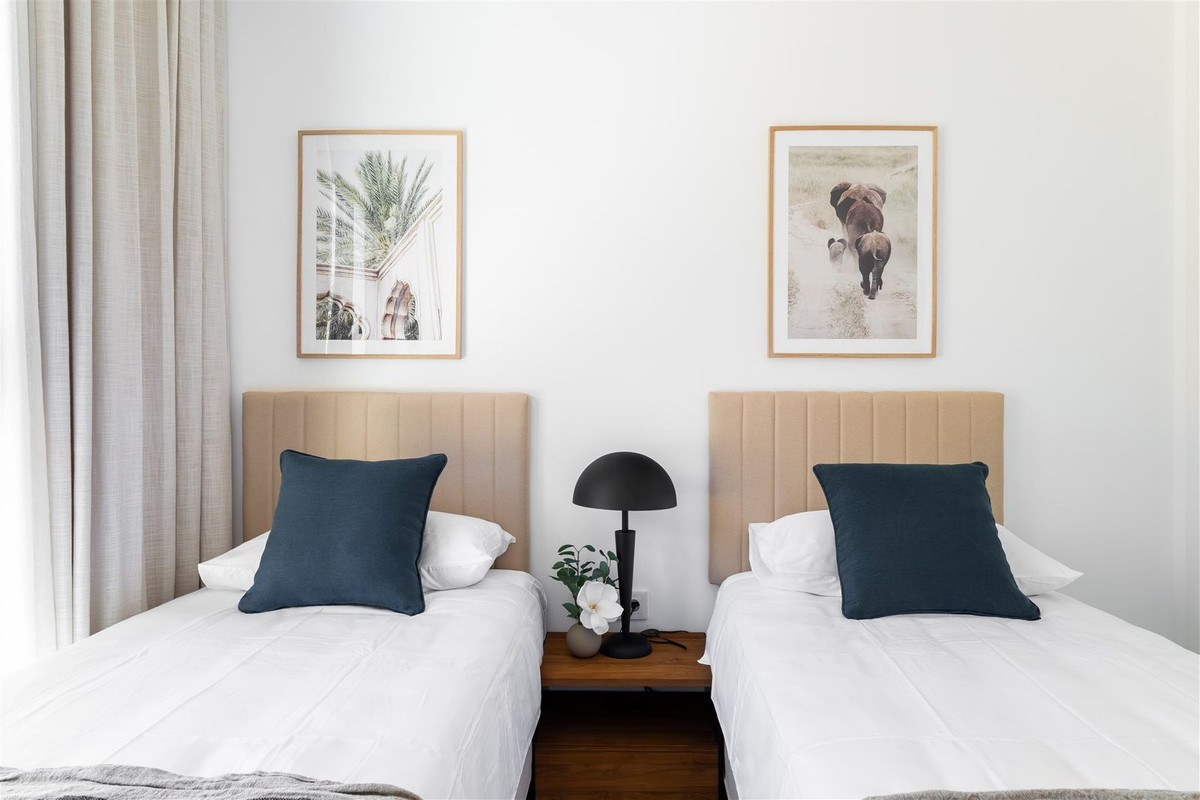 Welcome to this newly built 3-bedroom corner apartment on the second floor of the sought-after Lomas 2 – completed in 2025 and ready for immediate move-in. Here, spacious interiors, fantastic natural light, and spectacular views are combined with high-quality upgrades and tasteful furnishings. The generous corner terrace faces east, south, and west, providing sunshine from morning until evening – perfect for sunrise breakfasts, long sun-filled days, and atmospheric sunsets. Thanks to the open corner location, light streams in from multiple directions, creating an airy and inviting atmosphere throughout the home. From the terrace, you can enjoy breathtaking views of the Mediterranean. The property is sold fully furnished, with interiors professionally designed and furnished by a specialist company – an investment of €59,000. Additional upgrades have been chosen beyond the standard, including a premium appliance package that enhances both functionality and style. The floor plan is well thought out, with three spacious bedrooms, including a master bedroom with en-suite bathroom. The open-plan kitchen is fully equipped with modern quality appliances and connects seamlessly with the bright living room – perfect for social dinners and gatherings. Lomas 2 offers several pool areas, beautiful green spaces, and a tranquil atmosphere. Nearby you will find world-class sports facilities, an award-winning spa – the largest on the entire Costa del Sol – and fantastic restaurants. The sports club covers an area of 12,000 m² and features a high-tech gym as well as both indoor and outdoor swimming pools. Training sessions and swimming lessons are available, catering to both children and adults. There are also two courts for tennis, volleyball, and basketball, along with twelve paddle tennis courts where the best players in the sport meet annually during the Pro Tour Paddle Tournament. Within less than an hour, you can reach more than 60 golf courses, making this Europe’s leading hub for the sport. You can also enjoy polo, horseback riding, sailing, or water sports nearby. This truly makes the area a haven for those who love life! The property includes two private garage parking spaces and a storage room. This is a home for those seeking a combination of panoramic views, optimal sun exposure, and move-in-ready luxury.