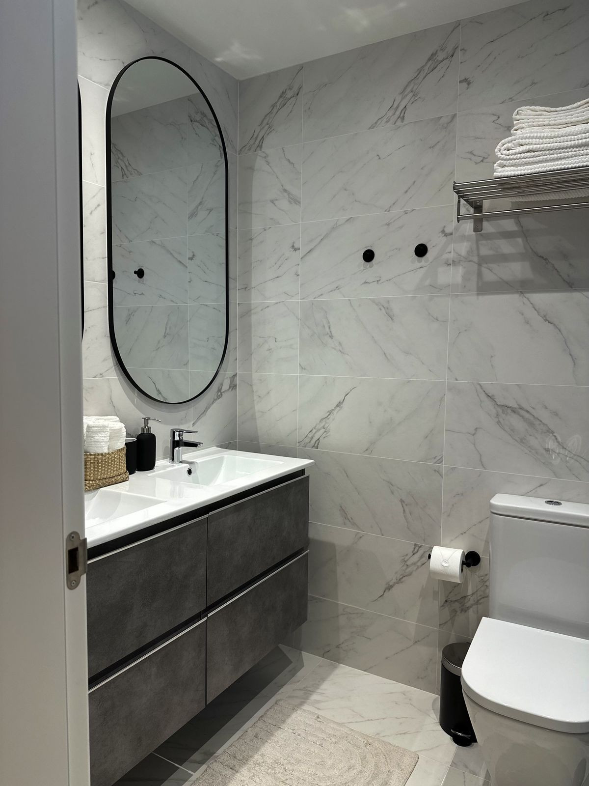 Brand New Fully Furnished 2-Bedroom Apartment in Puerto de Estepona – Just One Minute from the Beach! Step into modern coastal luxury with this stunning, brand-new apartment in a 2025-designed building at Calle Melilla, 55, Puerto de Estepona. Boasting 87 m² of useful space, this 2-bedroom, 2-bathroom gem is fully furnished and ready to move in ("a estrenar"), offering a seamless blend of contemporary design and unbeatable location. The open-plan layout features a spacious living-dining-kitchen area (28.15 m²), two comfortable bedrooms (12.54 m² and 10.59 m²), two modern bathrooms, a hall (3.53 m²), and patios for outdoor enjoyment – all with elevator access for ultimate convenience. Key Features: Prime Beachfront Location: Only a one-minute walk to the sandy shores, with a tennis/padel center right around the corner for active lifestyles. Modern and Efficient Design: Completed in 2025, with underground parking, full furnishings, and thoughtful spaces like a paso (1.70 m²) and patios (including Patio 2 at 9.53 m²) for relaxation. Communal Amenities: Enjoy relaxing rooftop areas with BBQ zones and a swimming pool – perfect for unwinding in the sun. Comfort and Convenience: Elevator directly to your floor, bright open-plan living, and proximity to Estepona's vibrant port area. This pristine property is an ideal retreat for those seeking effortless beachside living in a brand-new setting. Contact us today to secure your slice of paradise!