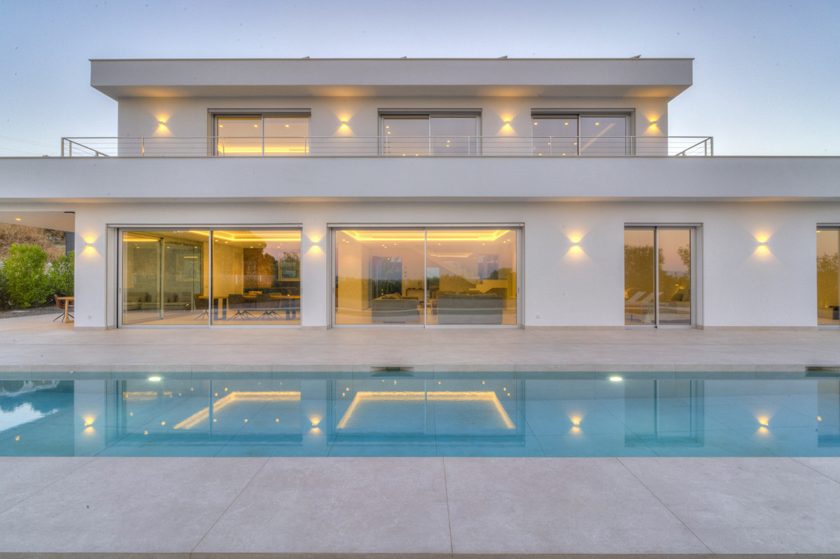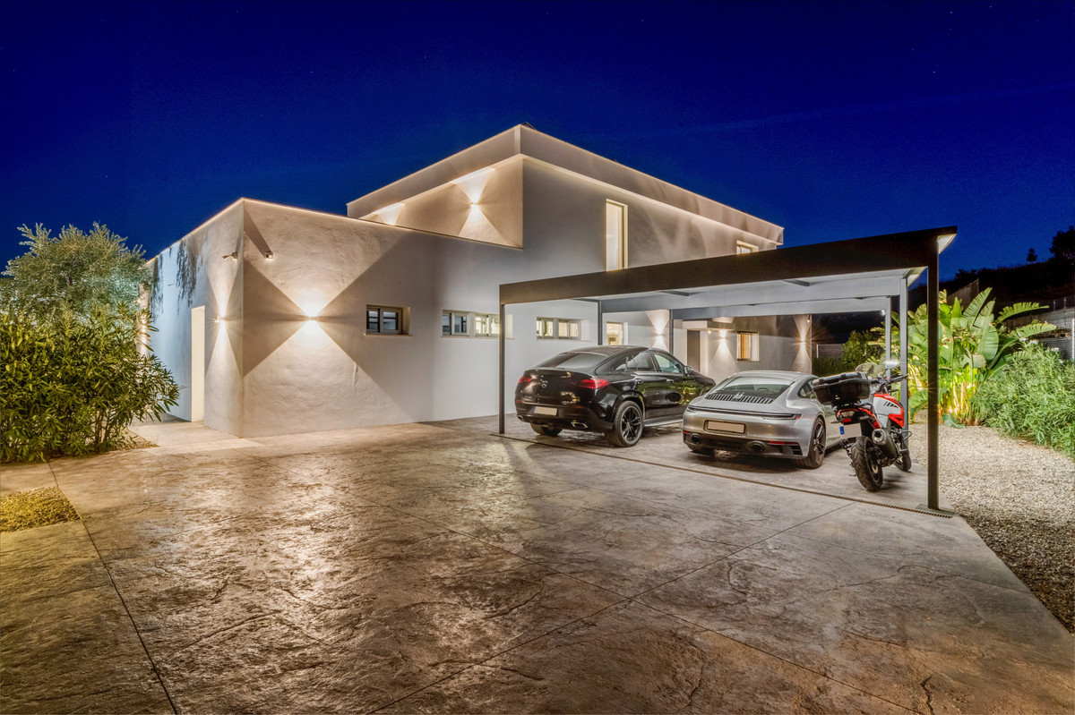 Setting: Close To Shops, Close To Town Orientation: East Condition: Excellent, New Construction Pool: Private Climate Control: Air Conditioning, U/F Heating, U/F/H Bathrooms Views: Mountain, Country, Panoramic, Garden, Pool, Street Features: Covered Terrace, Private Terrace, Ensuite Bathroom, Double Glazing, Domotics, Fiber Optic Furniture: Fully Furnished Kitchen: Kitchen-Lounge Garden: Private Security: Electric Blinds, Entry Phone, Alarm System Parking: Covered, More Than One Utilities: Solar water heating