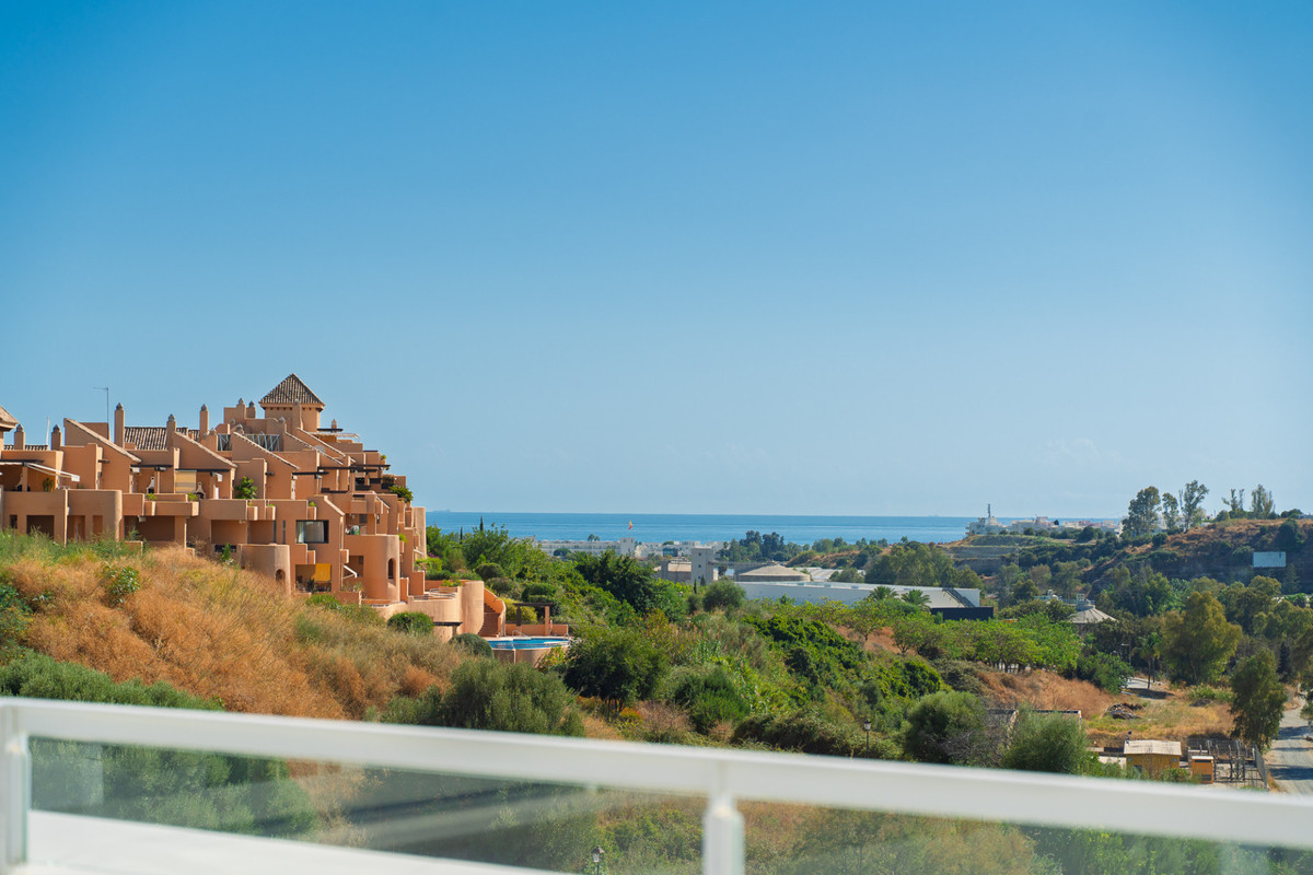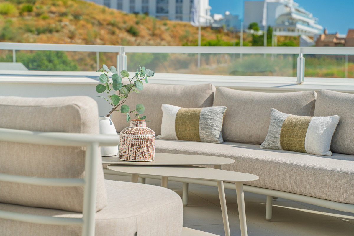Discover this stunning second-floor duplex penthouse, offering breathtaking panoramic views of the sea and mountains. The home features a spacious living room terrace and a rooftop terrace with a private solarium and elegant white pergola, perfect for enjoying the Mediterranean sun in complete privacy. The penthouse includes three bedrooms and three bathrooms, a private parking space, and a storage room, ensuring comfort and convenience for the whole family. Residents can enjoy a beautiful communal pool to relax and soak up the sun. The exclusive La Familia clubhouse provides access to a restaurant, indoor swimming pool, and gym. The complex itself also offers a gym and coworking space, combining luxury living with modern lifestyle amenities. Centrally located in Estepona, the property is just 5 minutes by car from the beach and nearby beach clubs. For nature and family fun, the Selwo Aventura wildlife park is a short drive away. Estepona is 10 minutes, Marbella 15 minutes, and Malaga Airport approximately 50 minutes. This penthouse offers the perfect combination of privacy, elegance, space, and a Mediterranean lifestyle with spectacular views.