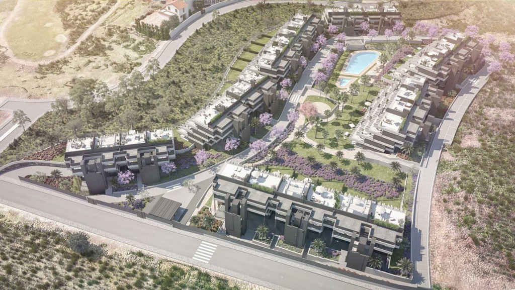 Setting: Close To Schools Pool: Communal Climate Control: Hot A/C Views: Mountain, Golf, Panoramic, Garden, Pool Features: Ensuite Bathroom, Double Glazing Kitchen: Fully Fitted Garden: Communal Security: 24 Hour Security Category: New Development