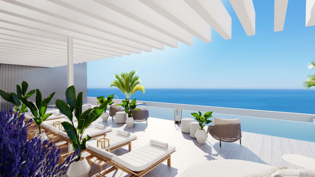 | Setting: Beachside, Close To Golf, Close To Shops, Close To Sea, Close To Town, Close To Schools Pool: Communal Climate Control: Hot A/C Views: Sea, Beach, Panoramic, Pool Kitchen: Fully Fitted Garden: Communal Security: 24 Hour Security Category: New Development |