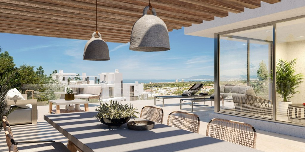 Setting: Close To Golf, Close To Shops, Close To Schools Orientation: South West Pool: Communal Climate Control: Hot A/C Views: Sea, Beach, Country, Panoramic Features: Ensuite Bathroom Kitchen: Fully Fitted Parking: Communal Category: New Development