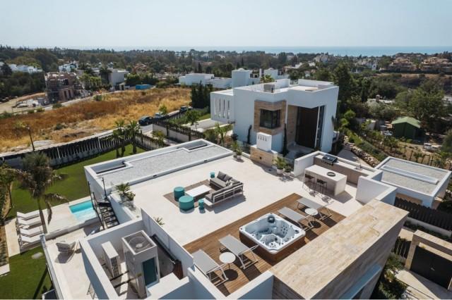 Uitzicht op tuin en zwembad Uitzicht op bergen Pas gebouwd Airconditioning Warm/Koud Automatic garage door Kelder Vaste barbecue In de buurt van voorzieningen Dicht bij scholen Scholen in de nabijheid 5-10 minuten van golfbaan Gelegen nabij golfterrein Eigentijdse stijl Moderne stijl Dubbele ramen Volledig ingerichte keuken Inbouwkasten Garderobe voor gasten Garage Afgesloten complex Home cinema Ideaal voor familie Aangelegde tuin Wasserij Zitkamer met open haard Luxe keuken Prestigieuze zone Prestigieus onroerend goed Dakterras Smart Home Solarium en Jacuzzi Ruime accommodatie Volledige vloerverwarming Luxe accessoires En suite badkamer Licht Kleedkamer Ondergrondse parkeergarage