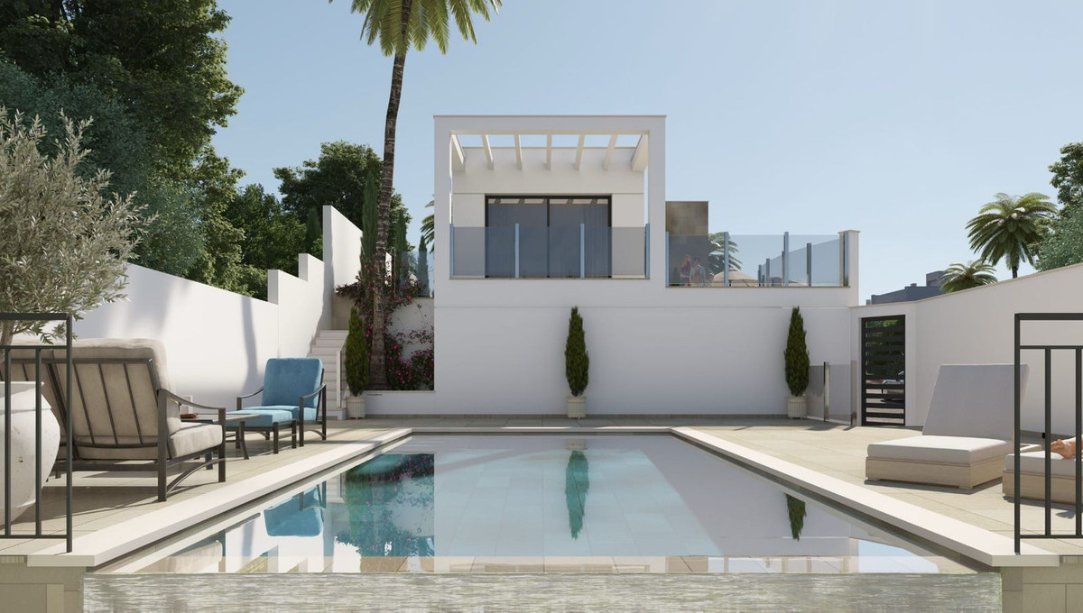 Elegant Sea-View Villa with Private Pool in Torrox Costa This stylish single-level villa with basement space is set on a 540 m² plot and offers 145 m² of beautifully designed living space. The layout includes three comfortable bedrooms, two sleek bathrooms, a spacious open-plan living and dining area, a well-appointed kitchen, generous terrace space, a covered porch, a private swimming pool, and a secure garage — all complemented by stunning panoramic views of the Mediterranean. Finished to a high standard, the home features premium porcelain tile flooring, double-glazed modern windows with safety glass, sleek white lacquered interior woodwork, built-in wardrobes, and efficient air conditioning and heating throughout. Additional highlights include high-quality bathroom fittings, a video intercom system, ambient LED spotlights, and an automatic garage door. Bathed in natural light thanks to its south-facing orientation, this villa combines luxury, comfort, and spectacular coastal views in one impressive package.