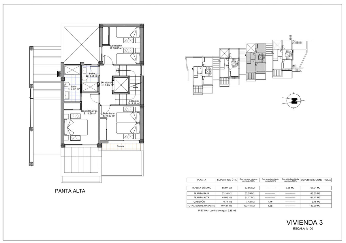 Cartujano Villas – Luxury and Privacy Just Steps from Burriana Beach Discover Cartujano Villas, an exclusive collection of only four detached villas in the heart of Nerja, just a short walk from the famous Burriana Beach. This unique project combines modern design, comfort, and privacy, perfect for those seeking a Mediterranean lifestyle by the sea. Each villa spans three levels and features 4 bedrooms, 3 bathrooms, a private elevator, garage, and a roof terrace with private pool, ideal for enjoying the sun and stunning views in complete privacy. Layout and Living Spaces: Ground floor: Main entrance, garage, and storage room, with access via elevator or stairs. First floor: Bright and airy open-plan living and dining area, modern kitchen, and a partially covered terrace perfect for relaxing, dining, or entertaining. Includes a guest bedroom with private courtyard. Second floor: Private sleeping area with three bedrooms, including the master with en-suite bathroom and built-in wardrobes. One bedroom features its own terrace. Rooftop terrace: Private pool and sunbathing area for enjoying the Mediterranean climate and views in total seclusion. High-End Features: Macael marble staircases and soundproof floors. Premium bathroom fixtures and high-quality materials. Choice of tiles and finishes for living areas and bathrooms. Solar water heating with electric backup. Video intercom, TV, radio, and Wi-Fi connections in living room and bedrooms. Available Villas: Villa 2: 132 m² + 82 m² terrace – €850,000 Villa 3: 132 m² + 82 m² terrace – €850,000 Estimated completion between 2024 and 2027. Only two villas remain, making this a unique opportunity to live just minutes from the beach, restaurants, and all the amenities Nerja has to offer. Note: New build purchase includes approximately 13% additional costs (VAT, notary, registry, and legal fees). Don’t miss your chance to secure a villa in Cartujano Villas, where luxury, comfort, and coastal living come together in perfect harmony.