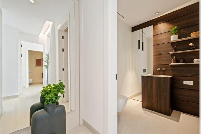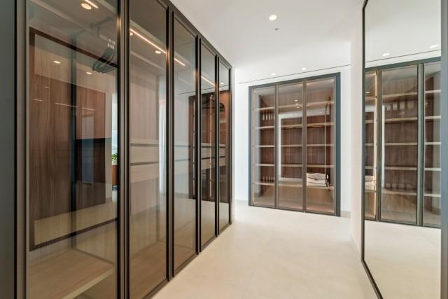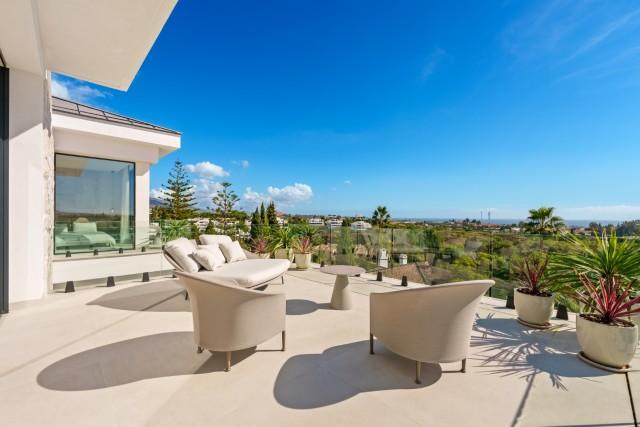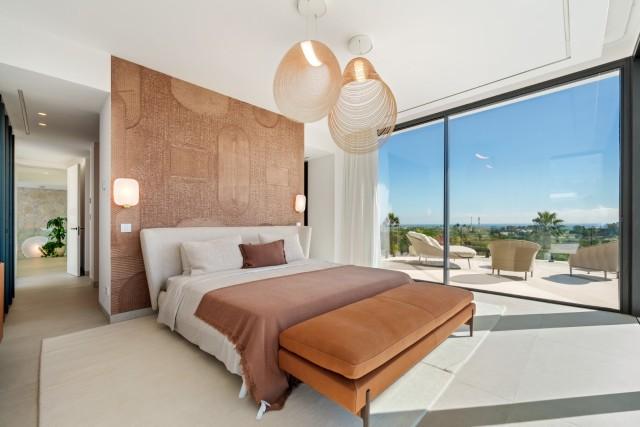 Deze uitzonderlijke moderne woning is gelegen in een exclusief, afgesloten complex op slechts enkele minuten van Marbella's meest prestigieuze bestemmingen. Gelegen tussen de glinsterende Middellandse Zee en de iconische berg La Concha, biedt de villa een adembenemend panoramisch uitzicht over de golfvallei, de natuurlijke landschappen en de kustlijn, en biedt volledige privacy en een diep gevoel van rust. De villa is elegant verdeeld over drie ruime verdiepingen met vijf prachtig ontworpen slaapkamers en vijf luxe badkamers, elk met nauwgezette aandacht voor detail ontworpen. De begane grond wordt gekenmerkt door lichte, open woonruimtes die moeiteloos overgaan in de designkeuken, de verfijnde eetkamer en de stijlvolle lounge. Grote ramen van vloer tot plafond zorgen voor veel natuurlijk licht en bieden toegang tot royale terrassen en een prachtig infinity pool van 51 m² dat het spectaculaire landschap omlijst en de naadloze binnen-buitenlevensstijl versterkt. De bovenste verdieping is gewijd aan de master suite, met een privéterras met een betoverend uitzicht, een inloopkleedruimte en een elegante, spa-achtige badkamer. Extra gastensuites zijn ontworpen met comfort, privacy en stijl in gedachten en bieden een serene oase voor familie en bezoekers. De onderste entertainmentverdieping biedt een verfijnde recreatieruimte, compleet met een bioscooplounge, fitnessruimte, wasruimte, diverse bergingen en een garage voor meerdere voertuigen. Elke zone is ontworpen om functionaliteit, elegantie en modern gemak te combineren. Deze magnifieke villa is ideaal gelegen op slechts enkele minuten van La Quinta Golf & Country Club, Los Naranjos Golf, Los Arqueros Golf en op korte rijafstand van de wereldberoemde Puerto Banús en Puente Romano. Omringd door weelderig groen, voorzieningen van wereldklasse en het beste van Marbella, vertegenwoordigt deze residentie een zeldzame mix van hedendaagse architectuur, natuurlijke schoonheid en een exclusieve levensstijl.