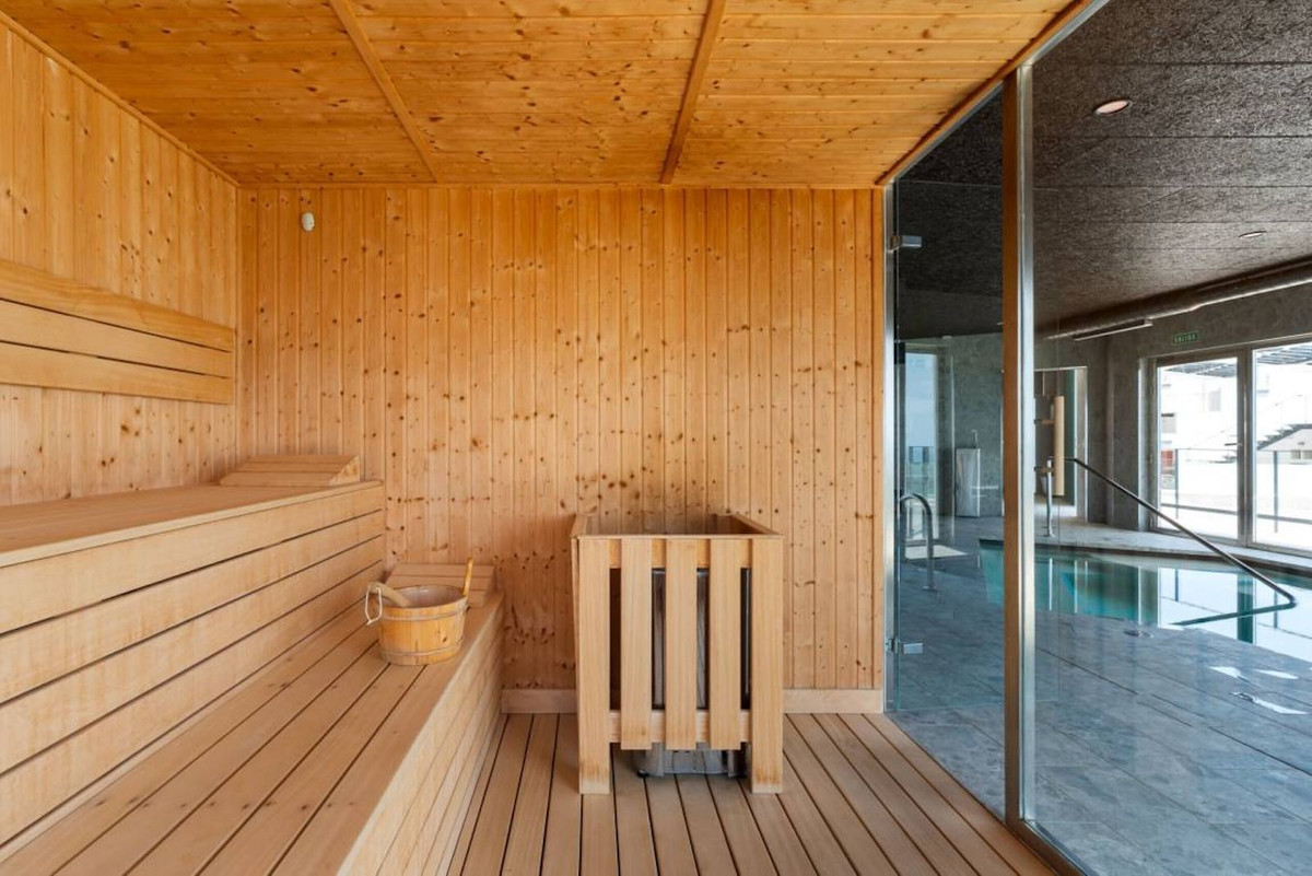 | Setting: Close To Sea Orientation: East, South Condition: Excellent Pool: Communal, Indoor, Heated, Children`s Pool Climate Control: Air Conditioning, Hot A/C, Cold A/C, U/F Heating, U/F/H Bathrooms Views: Sea, Mountain, Country, Panoramic, Pool, Street Features: Covered Terrace, Fitted Wardrobes, Private Terrace, Solarium, Gym, Sauna Furniture: Fully Furnished Kitchen: Fully Fitted Security: Gated Complex, Entry Phone Parking: Covered, Open, Street, More Than One, Private Utilities: Electricity, Photovoltaic solar panels, Solar water heating Category: Holiday Homes, Investment, Luxury, Resale |
