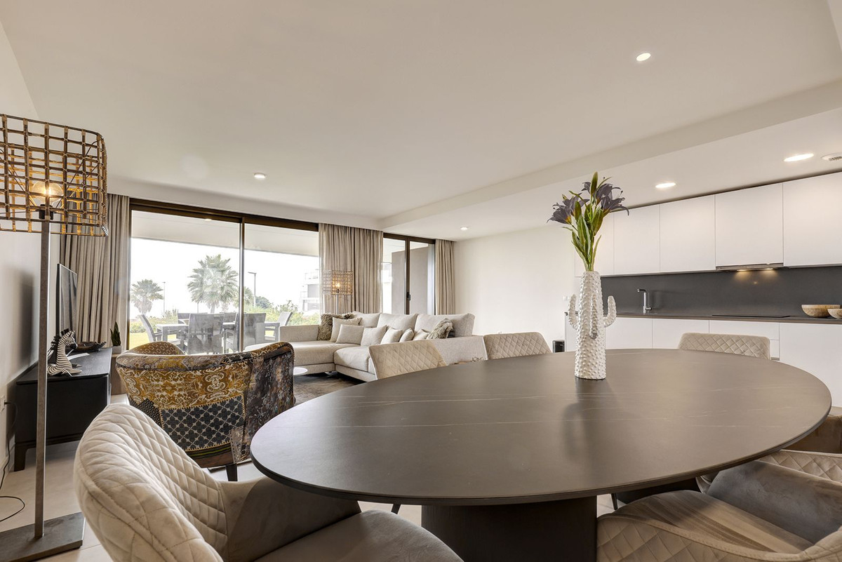 Brand-new 3-bedroom apartment with a private 193 m² garden for sale in La Sabina, Casares Costa Brand new, south-facing ground floor apartment with stunning location on an elevated plot offering breathtaking views over the Mediterranean. This meticulously designed apartment welcomes you into a refined world of comfort and contemporary style. The expansive living area is flooded with natural light and flows effortlessly into a fully equipped, open-plan kitchen—perfectly conceived for both everyday living and entertaining. The property offers three generously sized double bedrooms, each enjoying direct access to the terraces and beautiful views over the private garden that surrounds the home, creating a seamless indoor–outdoor lifestyle. Two stylishly appointed bathrooms further enhance the sense of quality and sophistication throughout. The sale includes an underground parking space and a storage room, ensuring both convenience and security. An exceptional home that combines modern design, generous outdoor space, and comfort in a highly desirable setting. Situated in the highly sought-after area of Casares Costa, the La Sabina development enjoys a prime location between the exclusivity of Sotogrande and the charm of the coastal town of Estepona. The area is renowned for its pristine beaches, all just minutes away, as well as its proximity to some of the Costa del Sol’s most prestigious golf courses. Among them is the world-famous Finca Cortesín, located only a short drive from the property. This exceptional setting perfectly combines tranquility, natural beauty, and easy access to leisure, dining, and lifestyle amenities—making it an ideal location for both permanent living and holiday enjoyment.