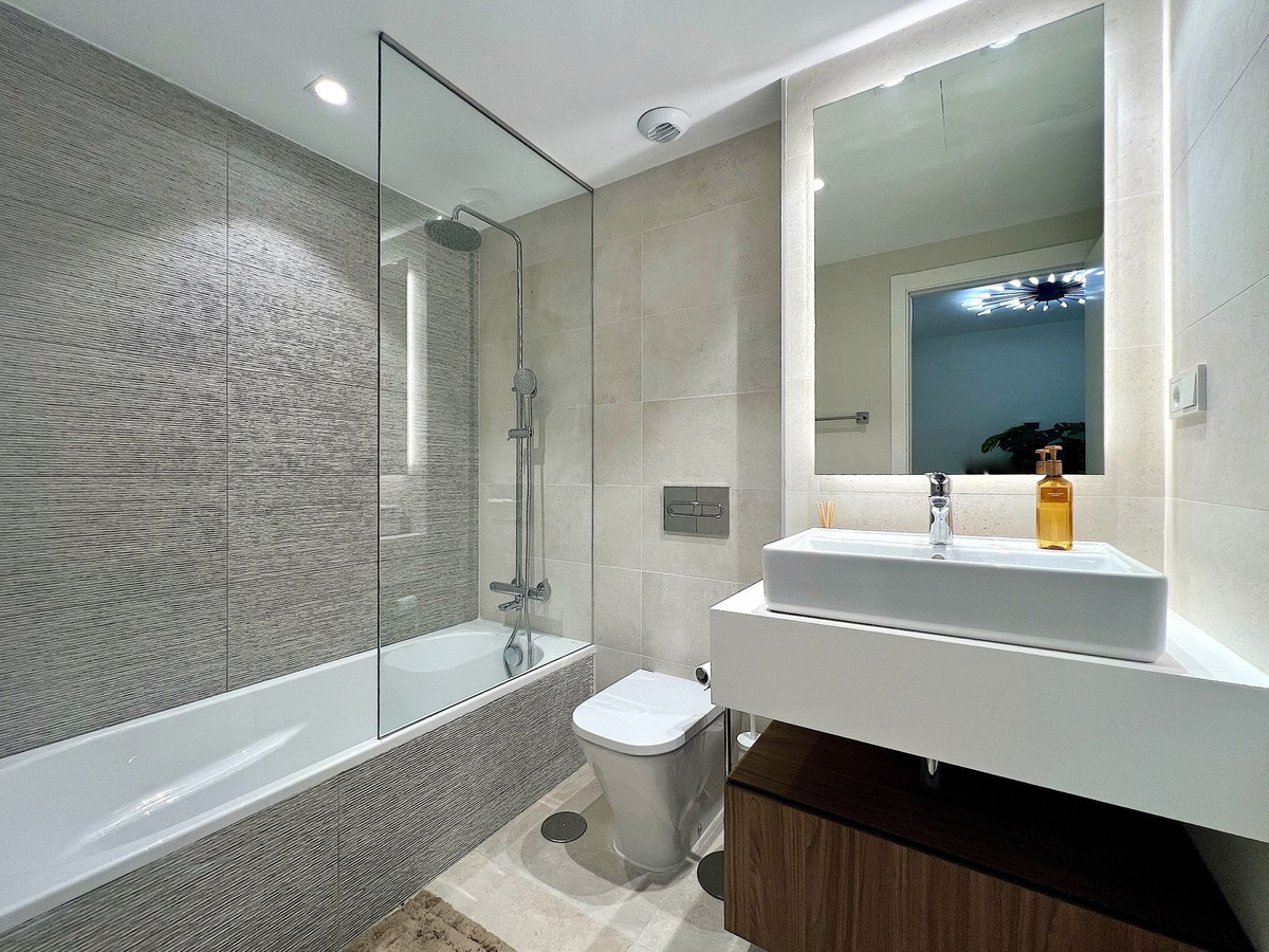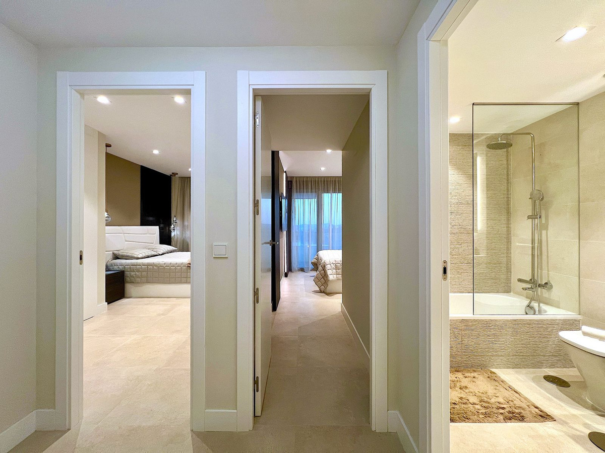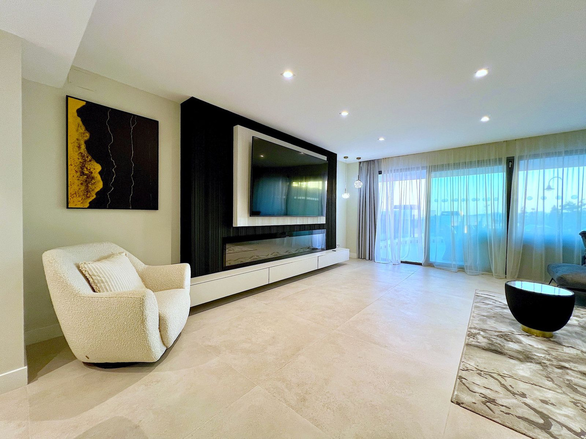 Setting: Close To Golf, Close To Sea, Urbanisation Orientation: South West Condition: Excellent Pool: Communal Climate Control: Air Conditioning Views: Sea Features: Covered Terrace, Fitted Wardrobes, Private Terrace, Gym, Tennis Court, Utility Room, Ensuite Bathroom, Double Glazing Furniture: Fully Furnished Kitchen: Fully Fitted Garden: Communal Security: Gated Complex Parking: Underground Utilities: Electricity Category: Luxury