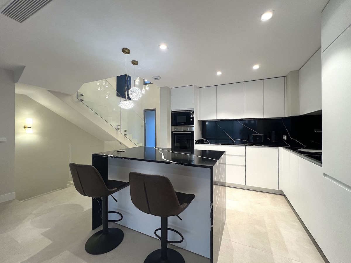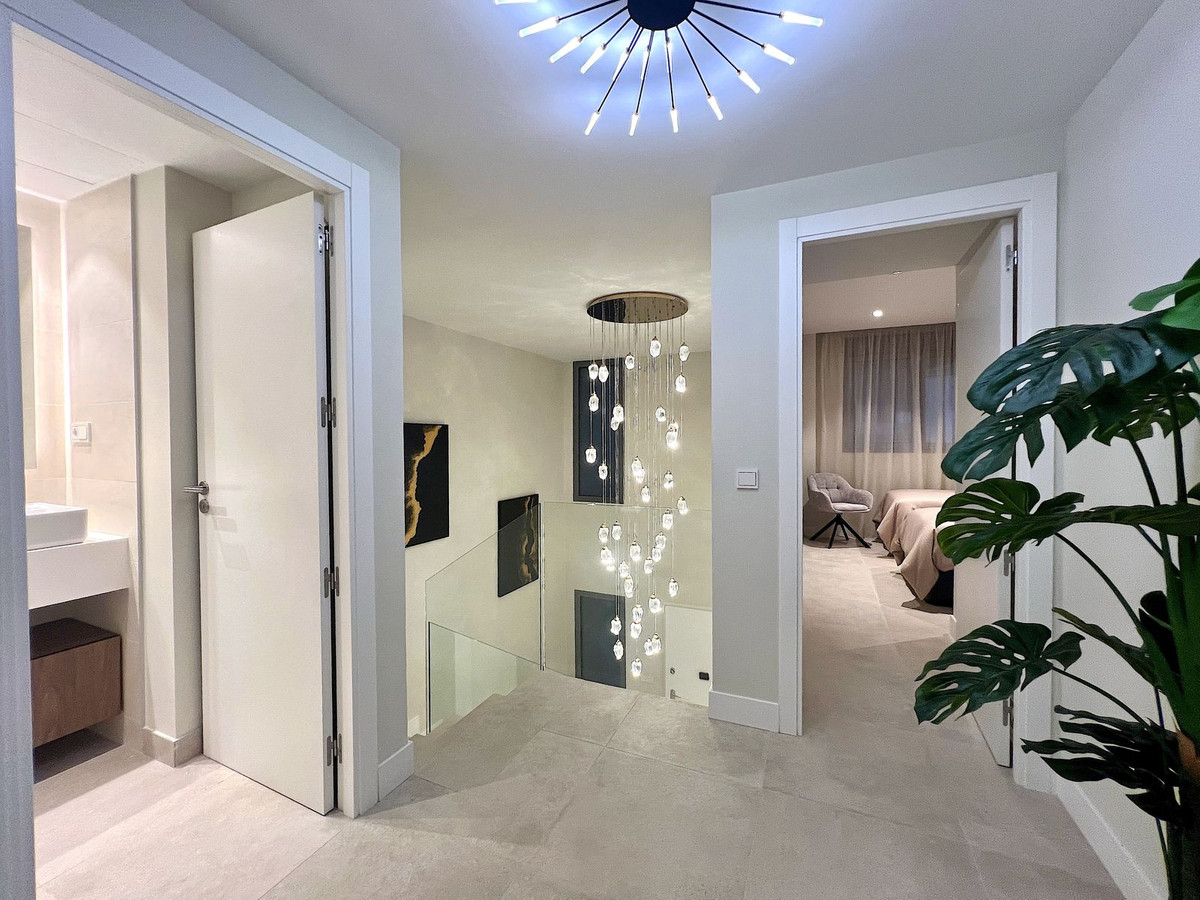 Nestled in a contemporary residential development, surrounded by pine forests and adjacent to a prestigious golf course, this corner townhouse captivates with its sophisticated architecture, comfort, and privileged lifestyle. From the moment you step inside, a majestic entrance hall with high ceilings, a designer chandelier, and a glass staircase hints at the property's unique character. The heart of the home is a bright, open-plan space where the designer kitchen, featuring white cabinetry, onyx marble accents, a central island, and Bosch appliances, flows seamlessly into an elegant living room dominated by a full-wall gas fireplace. From here, you can access a spacious south-facing terrace, perfect for watching the sunsets and enjoying the sun throughout the day. * **South-facing terrace** with unobstructed views and year-round sunshine * ​​**Designer kitchen** with premium finishes and Bosch appliances Upstairs, three bedrooms in neutral tones with built-in wardrobes offer direct access to a private terrace with sea views. The minimalist-inspired bathrooms combine natural wood with walk-in showers, creating a serene and contemporary atmosphere. An elegant glass staircase connects to the lower level, where the laundry room, storage room, and private garage are located. The resort-style community offers a gym, swimming pool, tennis courts, putting green, and concierge service. * **Private Garage** * **Access to complete resort-style community facilities** Just minutes from Blue Flag beaches, exclusive restaurants, and prestigious golf courses in La Cala, this property represents the perfect fusion of design, comfort, and a prime location. **Request your private viewing today and discover the home you've always dreamed of.**