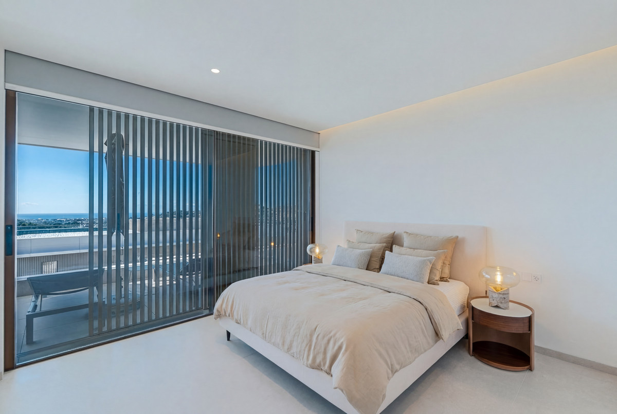 Setting: Frontline Golf, Close To Golf, Close To Shops, Close To Town, Close To Schools Condition: New Construction Pool: Communal Climate Control: Air Conditioning, U/F Heating Views: Sea, Mountain, Golf, Panoramic Features: Covered Terrace, Lift, Fitted Wardrobes, WiFi, Ensuite Bathroom, Double Glazing, Domotics Furniture: Fully Furnished Garden: Communal Security: Electric Blinds, 24 Hour Security Parking: More Than One, Private Utilities: Electricity Category: Golf