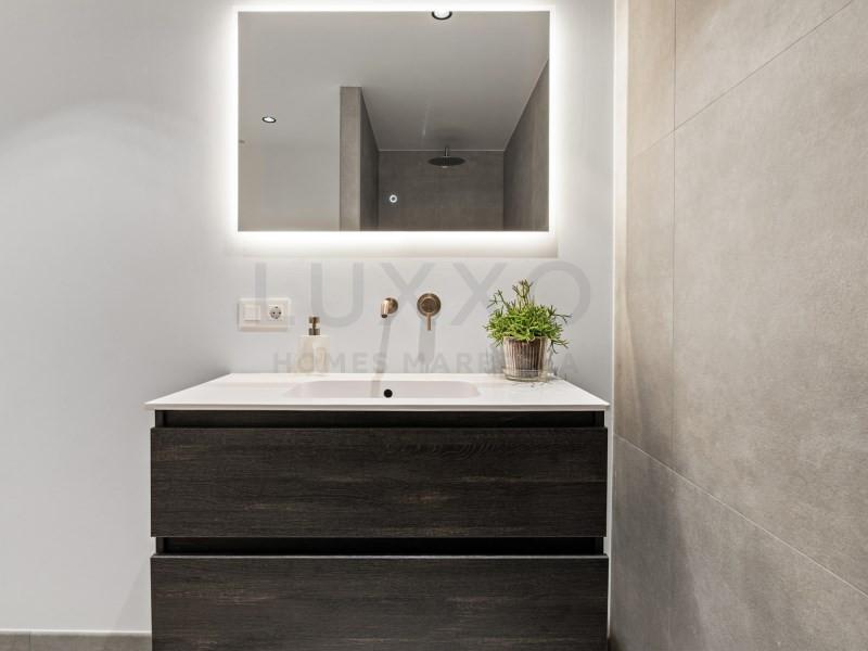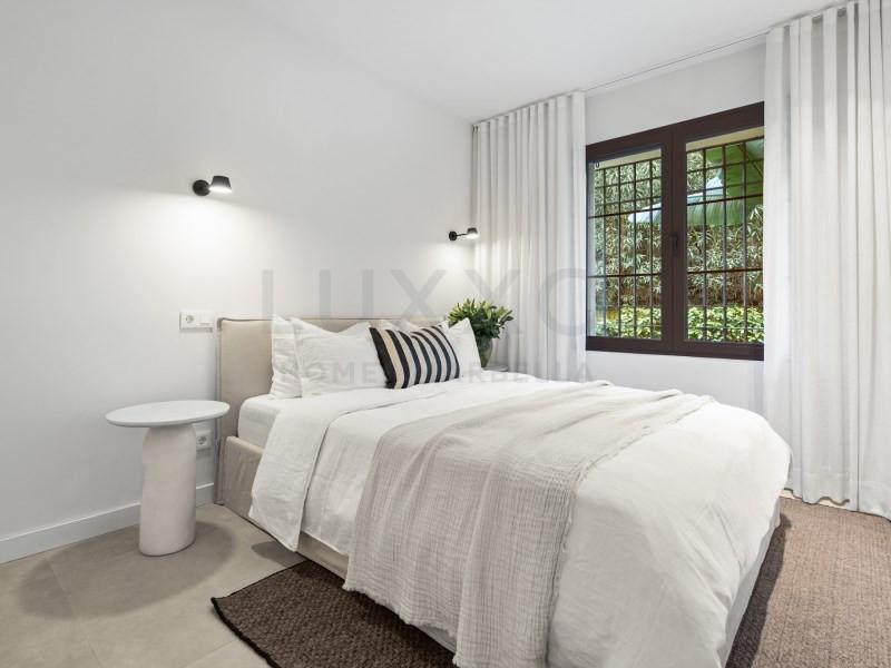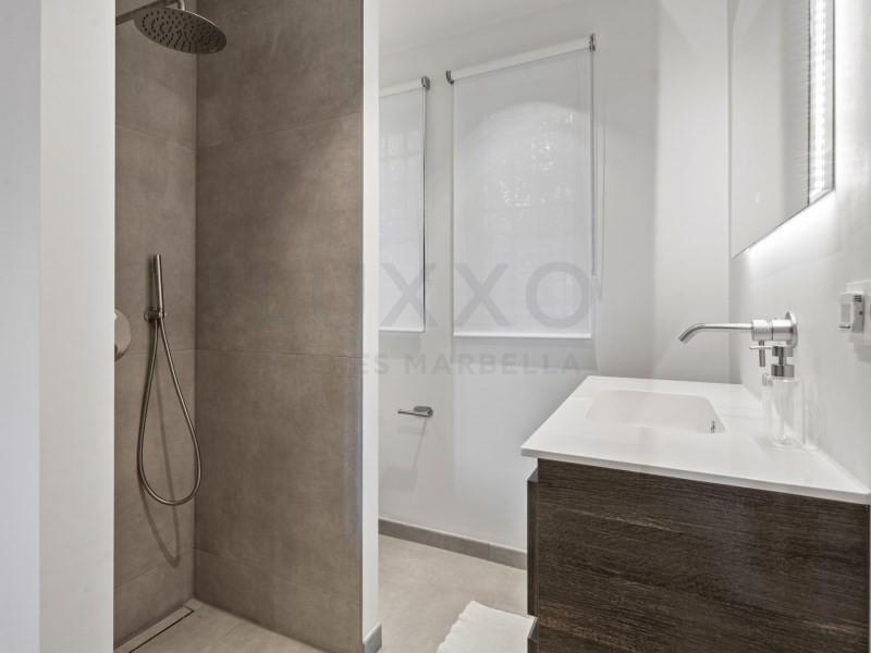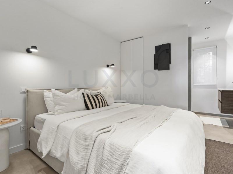 Welcome to Las Jacarandas, a beautifully fully renovated apartment located in the exclusive Los Arqueros urbanisation in Benahavís. Here you enjoy peace, comfort and luxury living, while still being perfectly connected to main roads and all nearby amenities. Within just 10 minutes you can be at the beach and the sea. The apartment has been thoughtfully redesigned to maximise space and natural light, creating an exceptionally wide and spacious living area with a bright and open feel. The living room is stylishly finished and features a large TV screen and a cosy fireplace, making it the perfect place to relax and unwind. The kitchen is a true highlight of the home, designed as a spacious open-plan living kitchen with additional seating space and finished to a high standard, offering every modern comfort and luxury detail. Whether you love cooking, entertaining or simply enjoying everyday life, this kitchen is made to be lived in. Both the living room and the kitchen open directly onto a generous covered terrace. The terrace is set up with a comfortable lounge area as well as a cosy seating space, with easy access to the kitchen. Thanks to the perfect balance of sun and shade, it is an ideal outdoor space to enjoy all year round, while helping to keep the apartment pleasantly cool. The property offers two comfortable bedrooms, each with its own beautifully finished bathroom. The entire apartment features a brand-new stylish floor and plenty of smart storage solutions, including custom-made wardrobes. There is also a separate storage and laundry area with extra cupboards and a neatly integrated built-in washing machine. The apartment is equipped with full air conditioning and includes a private parking space in the secure underground garage. From the garage, the apartment is easily accessible by both stairs and lift, adding to the overall comfort. Los Arqueros is a gated and secure community, with controlled access to the complex for complete peace of mind. The development is impeccably maintained and offers a beautiful swimming pool surrounded by landscaped gardens. Las Jacarandas offers a true luxury lifestyle experience on the Costa del Sol: move-in ready, stylish, spacious and perfectly located. Arrange your viewing and experience the atmosphere, light and comfort of this exceptional home. #ref:Las Jacarandas 9-2